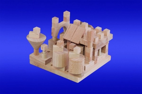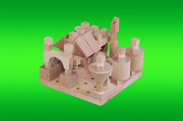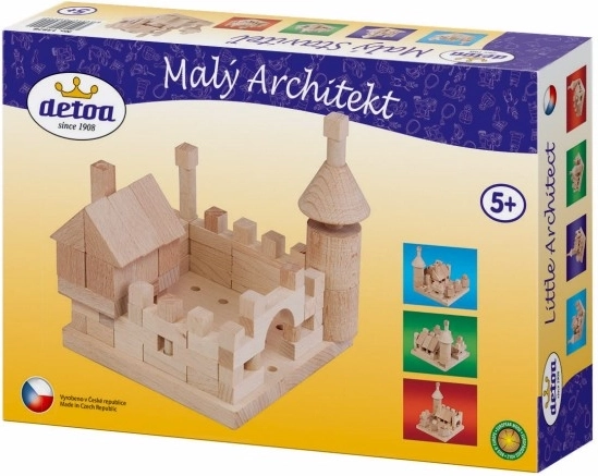 Découvrez le monde créatif avec le jeu de construction en bois Detoa Petit architecte. Il contient 120 petites pièces et une base perforée sur laquelle les pièces se enfilent sur des tiges. Le jeu développe la motricité fine, la représentation spatiale et la créativité. Convient aux enfants à partir de 3 ans et répond aux exigences de sécurité de l’UE.