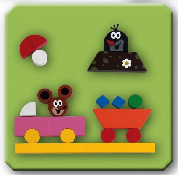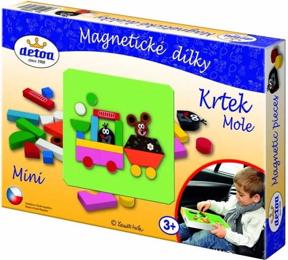 Découvrez le charme du jouet tchèque classique avec les pièces magnétiques Detoa sur le thème de la célèbre Petite Taupe. Les éléments en bois sont munis d’un aimant au dos, ce qui leur permet d’adhérer parfaitement aux tableaux magnétiques, au réfrigérateur ou à d’autres surfaces métalliques. L’ensemble est idéal pour le jeu libre, l’invention d’histoires et les premières créations.