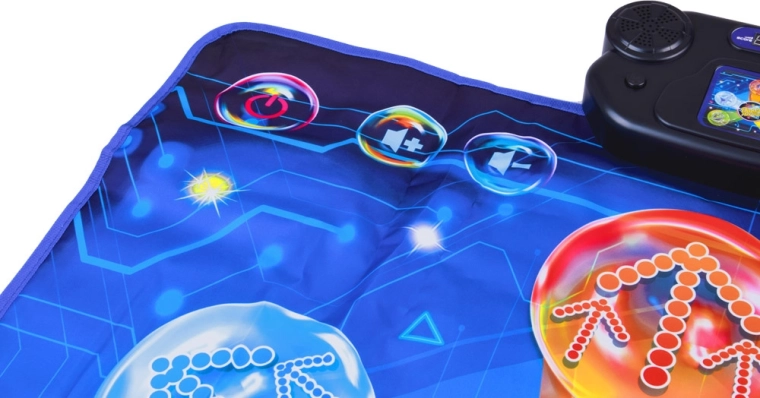 Cinq zones de danse rétroéclairées à réponse rapide réagissent à chaque pas. Les effets lumineux guident les enfants au rythme de la musique et renforcent le plaisir ainsi que la motivation à bouger.