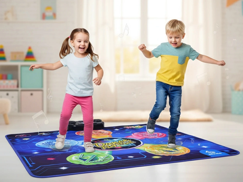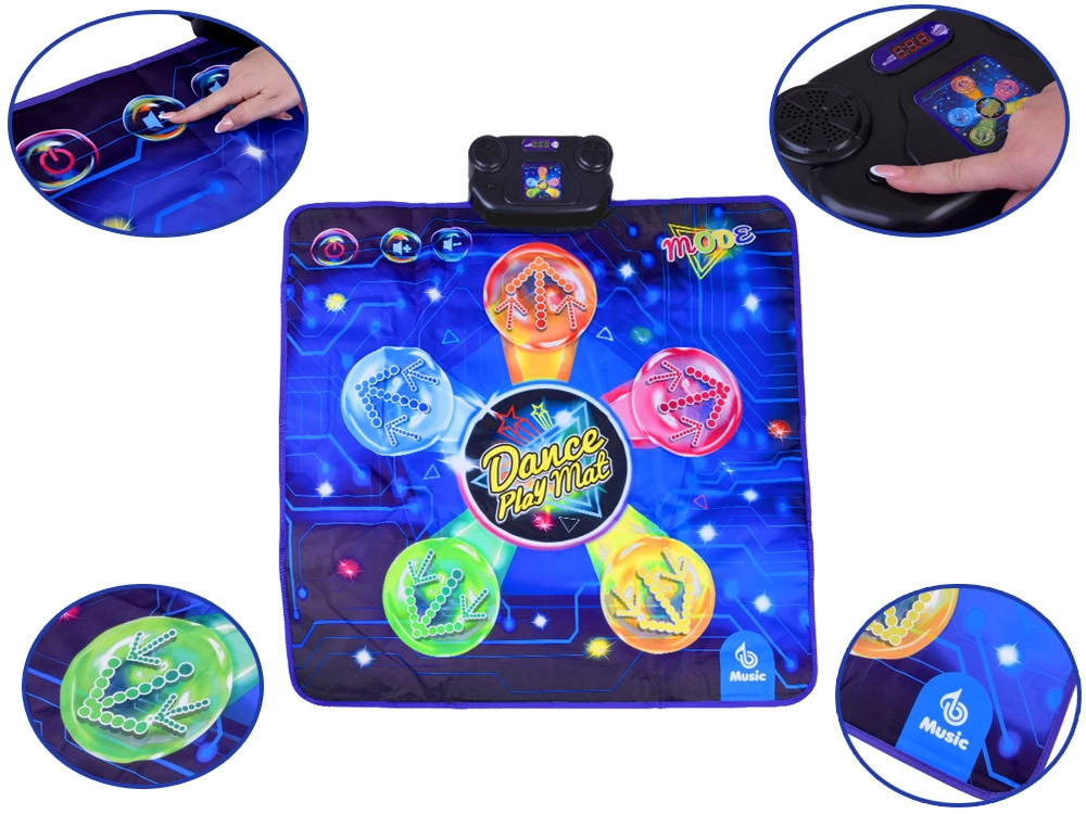 Le tapis encourage le mouvement actif, développe la coordination, les réflexes et la mémoire (mode séquentiel jusqu’à 50 pas) et constitue un excellent moyen d’éloigner les enfants des écrans. Grâce à sa surface résistante et sa couche inférieure antidérapante, la danse est sûre et confortable.
