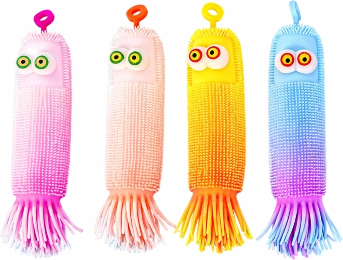 Amusante balle sensorielle à malaxer en forme de petite créature colorée avec des picots souples, offrant un relâchement immédiat du stress, une stimulation tactile et des effets lumineux LED lors du rebond. Grâce à son matériau souple et élastique, vous pouvez la presser, étirer et faire rebondir, tandis que la boucle supérieure facilite la prise en main et la suspension.