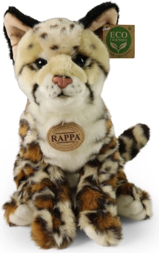 Adorable ocelot en peluche de 27 cm de la collection exclusive RAPPA, qui ravira les enfants comme les amoureux des animaux. Grâce au travail artisanal, il paraît très réaliste, possède une fourrure toute douce et soyeuse, une coloration détaillée et délicate et est rembourré avec un matériau recyclé issu de bouteilles PET, sans danger même pour les tout-petits.