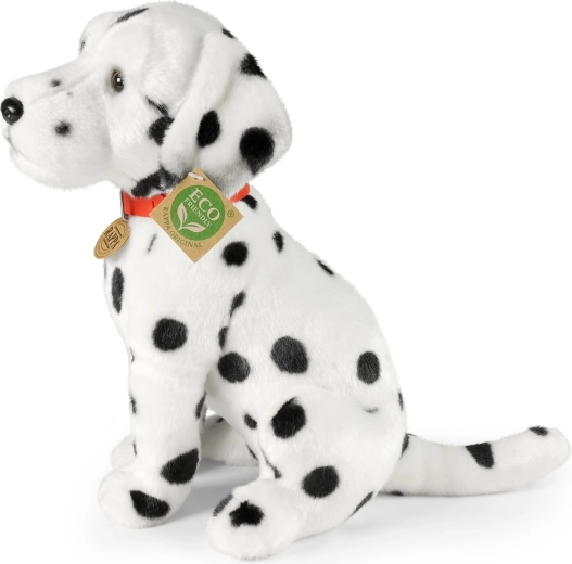 Taches dalmatiennes fidèles, truffe brodée et peluche moelleuse pour un look authentique et des câlins agréables.