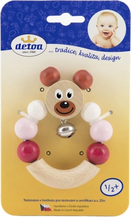 Adorable hochet en bois avec petit ours de couleur rose qui fera plaisir à chaque bébé. Une clochette intégrée tinte délicatement, le hochet est très léger et grâce à ses dimensions compactes 7 × 9 cm, il tient parfaitement dans les petites mains. Le produit répond aux exigences strictes de l’UE en matière de sécurité des jouets et arbore le certificat Jouets sûrs.