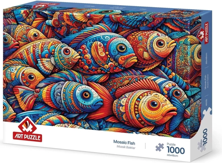 Découvrez le plaisir d’assembler un motif riche en couleurs et en détails. Le puzzle ART PUZZLE Poissons mosaïqués est un excellent choix pour une soirée tranquille ou comme cadeau pour les amateurs de puzzles. Grâce à une impression de qualité et à un ajustement précis, les pièces s’emboîtent en douceur pour former une image impressionnante d’environ 68 × 48 cm.