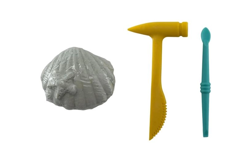 - Bloc de plâtre avec trouvailles cachées (coquillages/coraux/figurines)