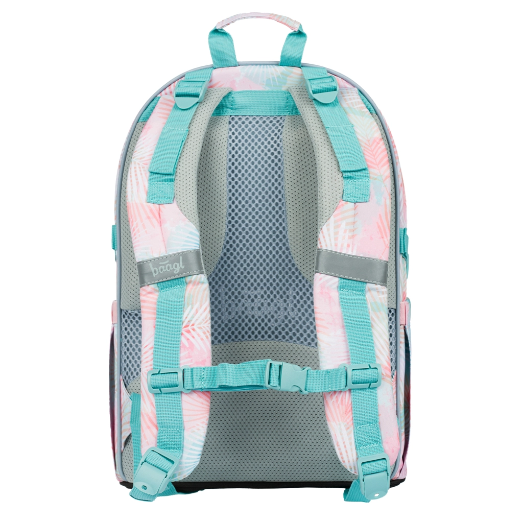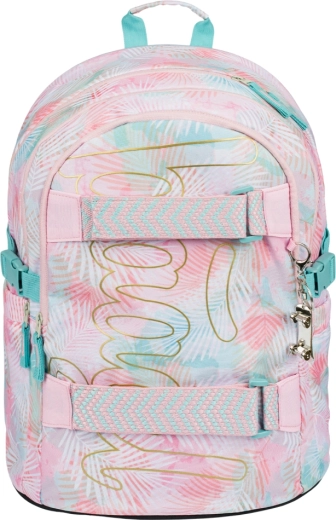 Le set scolaire BAAGL Skate Sunset est un choix idéal pour les élèves qui souhaitent combiner confort, fonctionnalité et un design pastel frais avec motif de feuilles de palmier. La pièce maîtresse est le sac à dos ergonomique avec dos rembourré, bretelles et sangle pectorale réglables et sangles de compression. Trois compartiments avec organisateur et poche rembourrée pour ordinateur portable 15" gardent manuels et appareils en sécurité et parfaitement ordonnés.