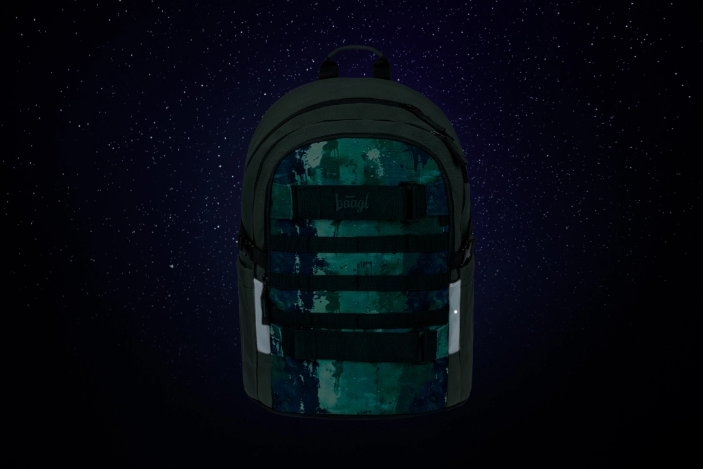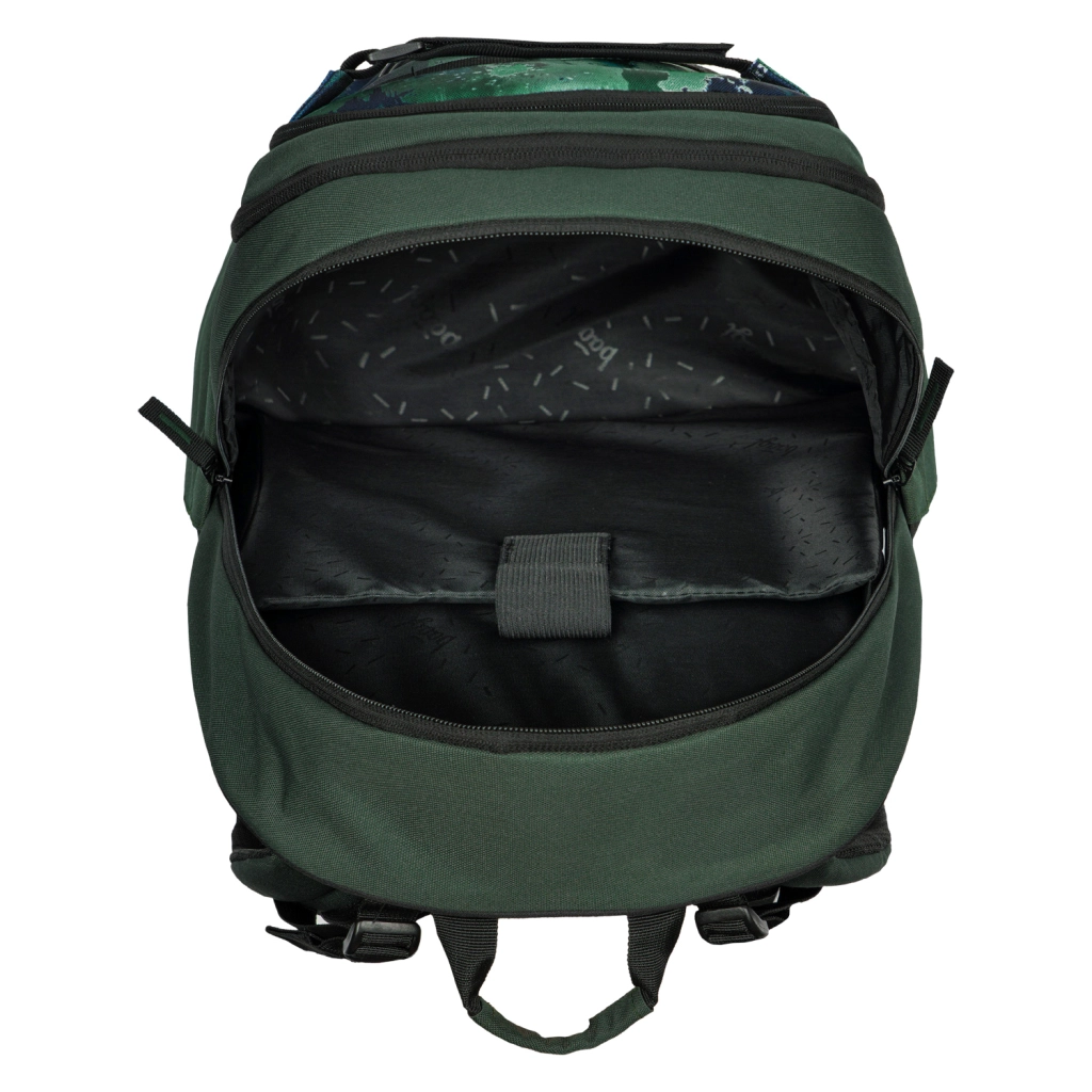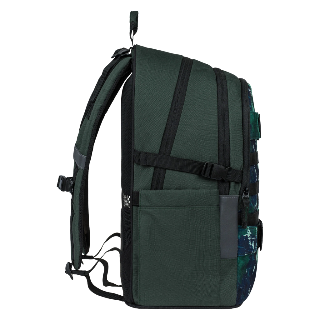 Équipement scolaire complet au design unifié Forest pour élèves plus âgés et étudiants. Le set comprend un solide sac à dos scolaire avec fixation pour skateboard, une trousse spacieuse, un sac de sport pliable, une banane pratique et une housse de protection pour ordinateur portable. Matériaux certifiés GRS, traitement déperlant, éléments réfléchissants de sécurité et fermetures éclair YKK fiables pour assurer confort, ordre et longue durée de vie.
