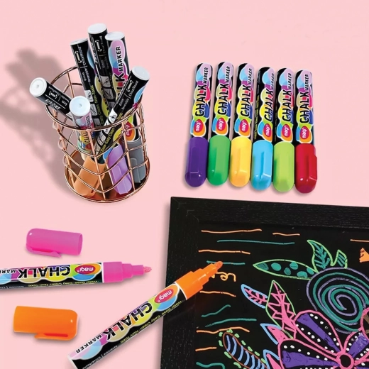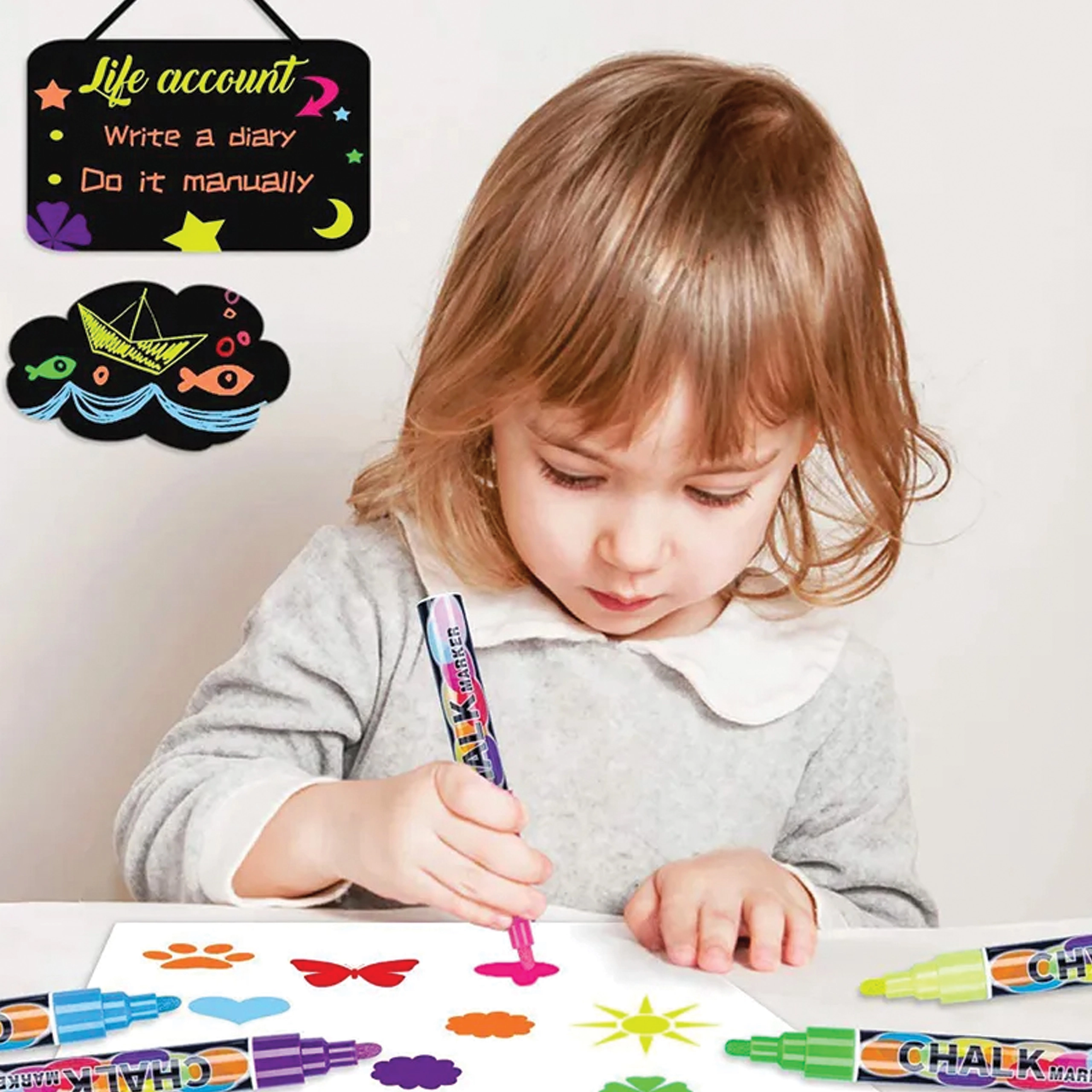 Les marqueurs craie liquides créent des inscriptions nettes et visibles, sans poussière ni odeur. Parfaits pour les écoles, cafés et tableaux à la maison.