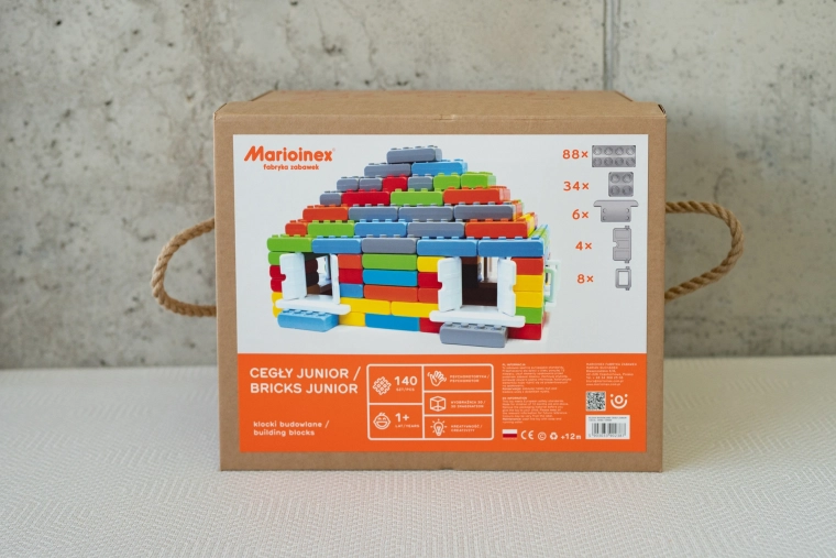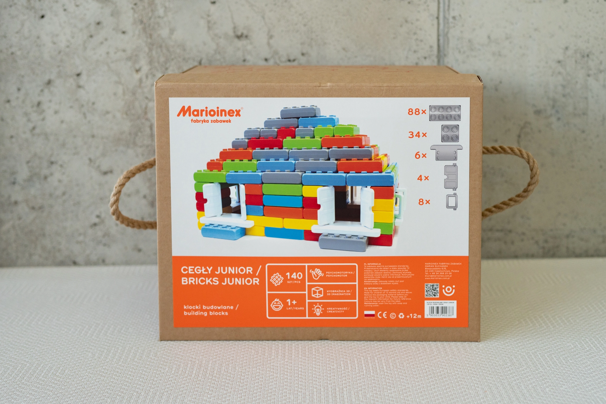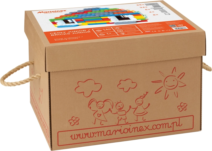 Gigantesque jeu de construction pour petits bâtisseurs : 140 grandes briques colorées avec fenêtres et portes pour créer des maisonnettes et de grandes structures, à la maison comme en extérieur. Les pièces sont durables, flexibles et sûres, se connectent et se séparent facilement et développent la créativité, la motricité fine et la coordination des enfants dès 2 ans. Fabriqué en Pologne.