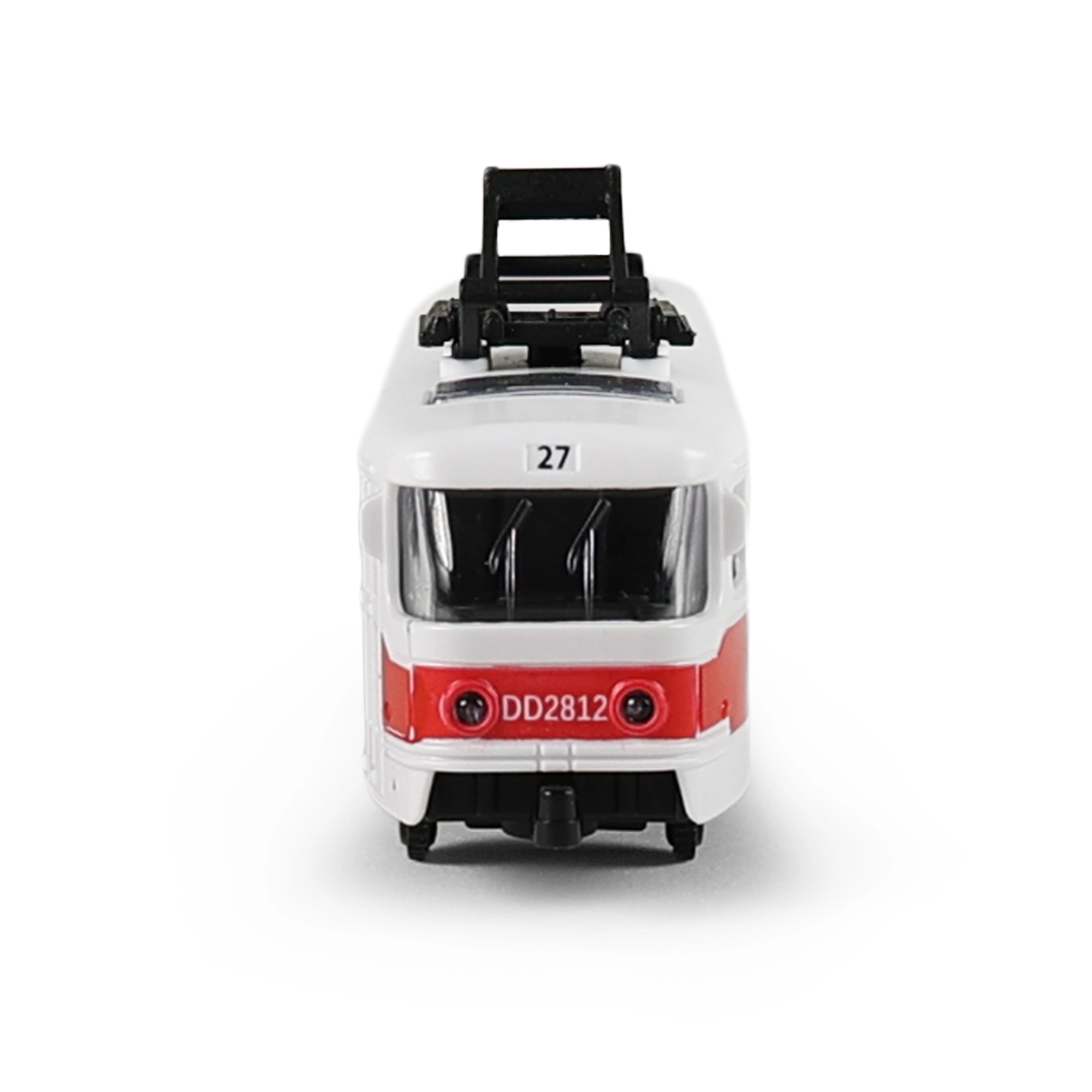 Tramway rouge et blanc réaliste avec finitions détaillées des fenêtres, des portes et du collecteur de toit, un excellent complément au parc de véhicules des enfants. Grâce à sa taille compacte de 16 cm, il tient bien en main et convient parfaitement au jeu à la maison comme en voyage.