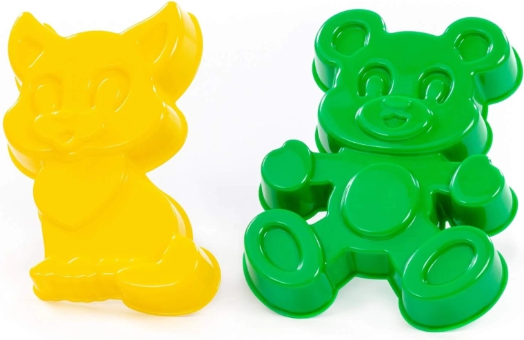 Les moules sont en plastique léger et résistant, faciles à tenir et à démouler du sable. Ils sont proposés dans différentes couleurs vives – la combinaison exacte est choisie aléatoirement selon la disponibilité. Prix valable pour un set.
