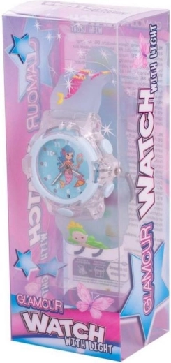 Un assortiment de motifs est disponible — par exemple licorne, sirène, motifs fleuris ou variantes colorées en bleu, rose et violet. Le design précis ne peut pas être choisi ; la montre est envoyée aléatoirement selon la disponibilité. Les piles LR66 sont déjà incluses dans l’emballage, vous pouvez donc utiliser la montre immédiatement.