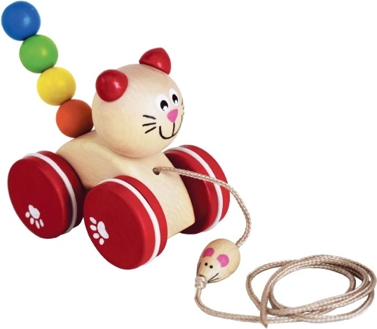 Ce jouet à tirer en forme de chat captivera tout petit qui découvre déjà le monde des premières foulées. Avec le chat, une souris s'amuse à rouler en arrière-plan sur la ficelle, ajoutant une dimension supplémentaire de divertissement.