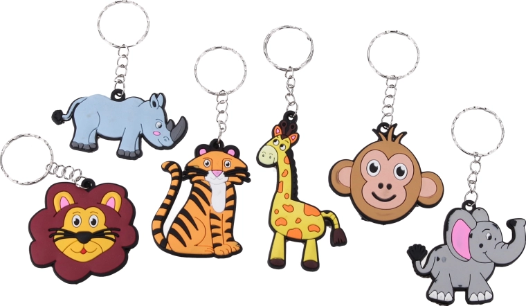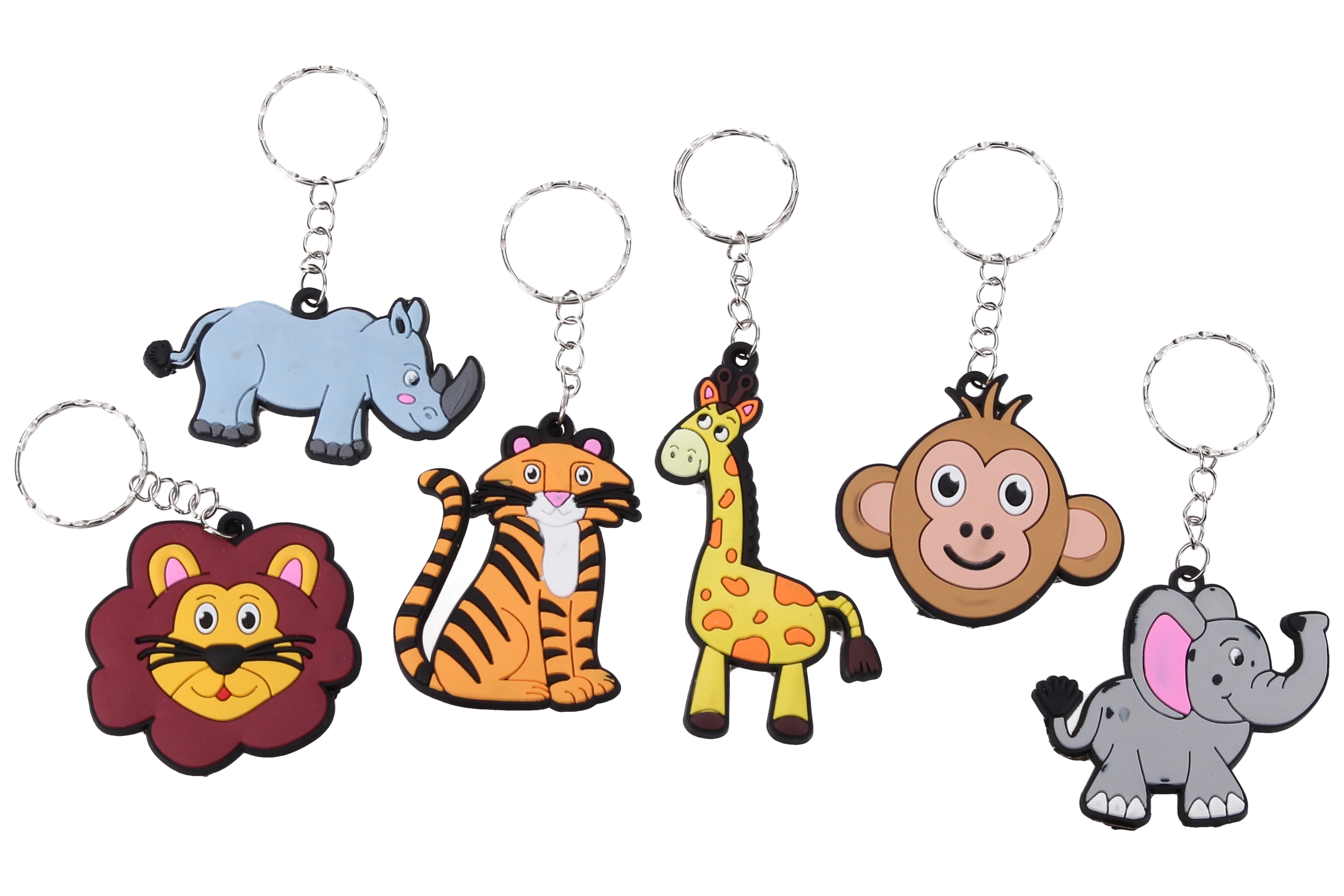 Un porte-clés animalier adorable en assortiment pratique de motifs ravira enfants et adultes. Choisissez parmi les motifs tigre, singe, éléphant, lion, girafe et rhinocéros. Idéal comme cadeau, pour les clés, le sac à dos ou la trousse. Le lot comprend 12 pièces sur carte.