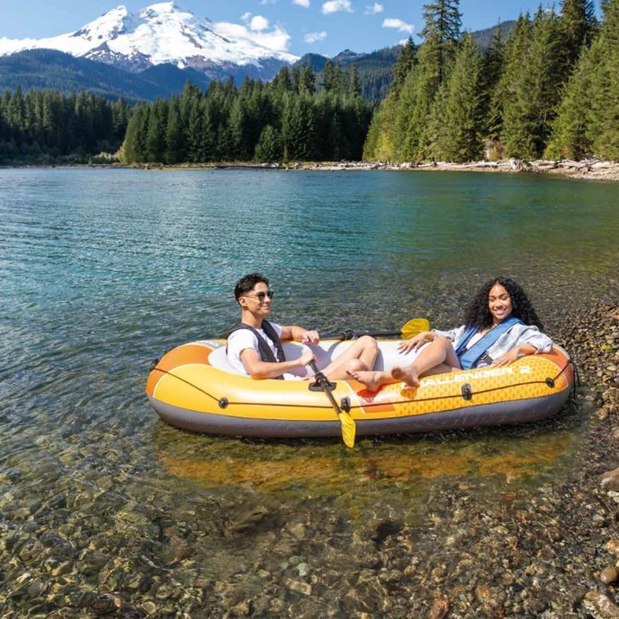 Léger et résistant, le canot pneumatique INTEX CHALLENGER 2 pour 2 personnes est idéal pour les eaux calmes, les balades et la pêche. Il offre 3 chambres à air pour plus de sécurité, un plancher i-Beam pour le confort et la stabilité, une valve Boston pour un gonflage et un dégonflage faciles, ainsi qu'une corde de sécurité périphérique pratique. Le pack comprend une pompe manuelle, 2 rames et un rustine.
