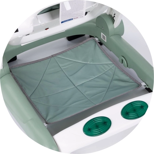 Des patins antidérapants, des butées, des roulettes verrouillables et à vitesse réglable assurent la tranquillité des parents et des déplacements sûrs pour l’enfant.