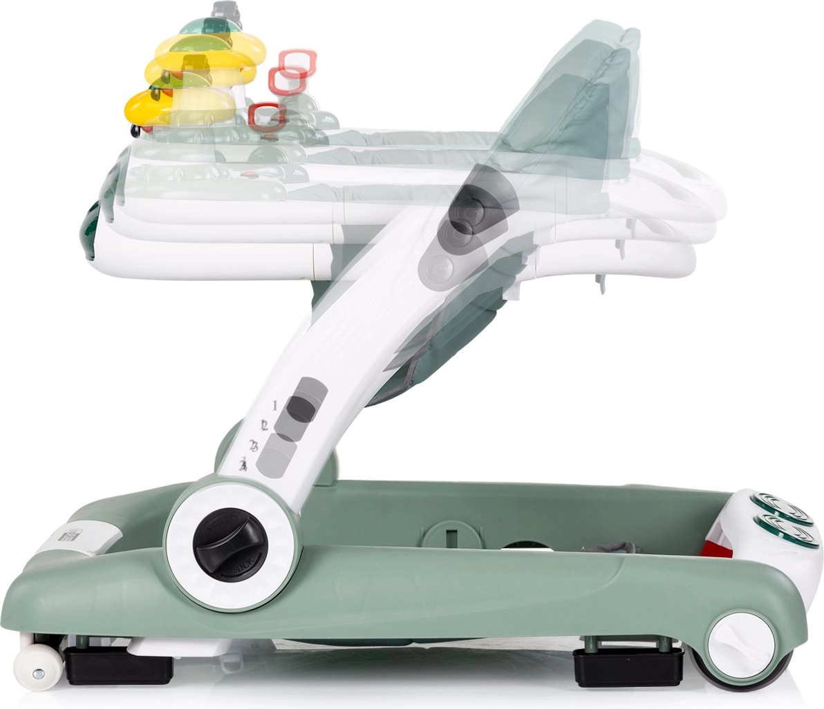 - Trotteur, centre de jeux, mode sauteur, pousseur/voiturette