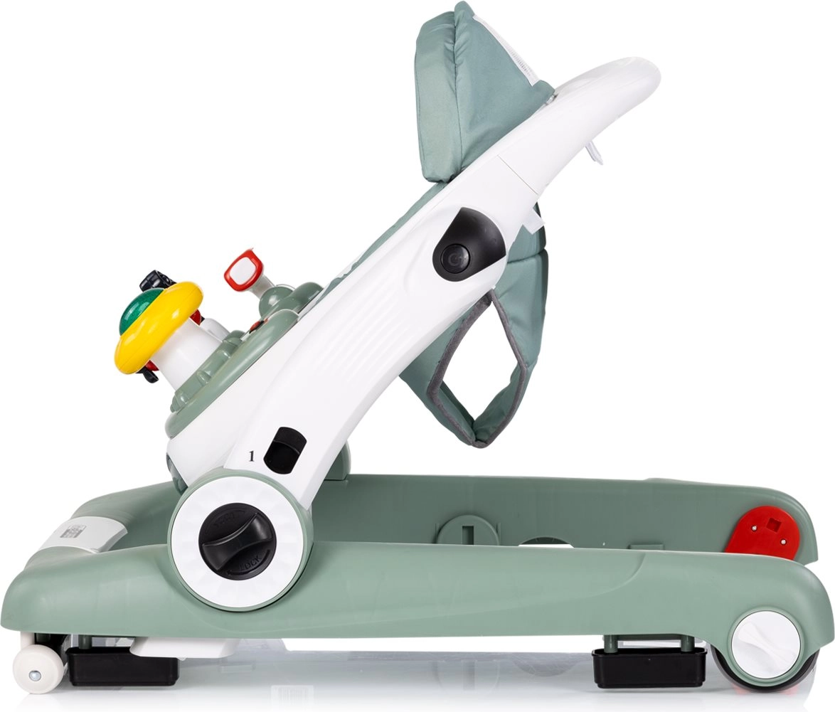 Trotteur interactif 4-en-1 CHIPOLINO Little Explorer Basil accompagne bébé de ses premiers pas jusqu’à l’exploration autonome. Il offre un trotteur, un centre de jeux avec lumières et musique, un mode sauteur pour renforcer les muscles et un pousseur/voiturette pour une poussée en toute sécurité. Grâce à la hauteur réglable, aux patins antidérapants, aux butées et au réglage de la vitesse des roulettes, il est sûr et confortable pour les enfants comme pour les parents.
