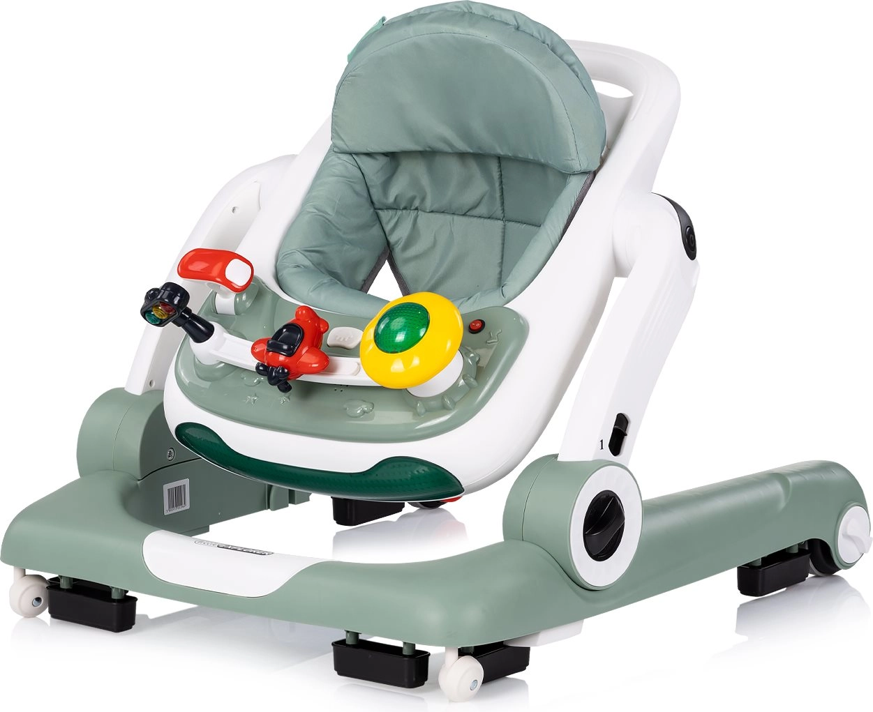 Découvrez l’assistant universel pour les premiers pas – CHIPOLINO Little Explorer Basil en version 4-en-1. Une structure stable, une base large et un siège confortable offrent de l’assurance à l’enfant, tandis que le panneau interactif avec effets lumineux, boutons musicaux et jouets mobiles stimule les sens, l’imagination et la motricité fine. La hauteur s’adapte facilement à la croissance de l’enfant, ce qui permet une utilisation prolongée du trotteur.