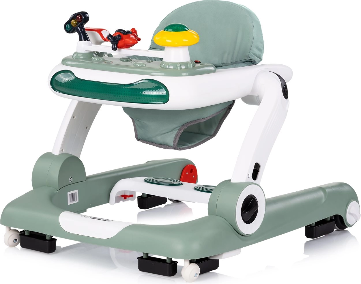 - Fonctions 4-en-1 : trotteur, centre de jeux, mode sauteur, pousseur/voiturette