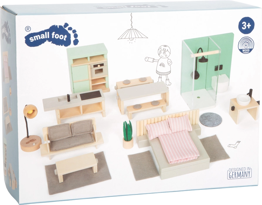 Transformez votre maison de poupées en un foyer moderne et chaleureux avec cet ensemble complet de Small Foot. Le set comprend l’équipement pour la chambre, la salle de bain, la cuisine, la salle à manger et le salon, dans un style scandinave. Les enfants adoreront le bois naturel, les couleurs pastel douces, les détails modernes et la possibilité de jeux de rôle avec des poupées jusqu’à 12 cm.