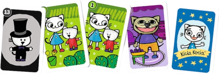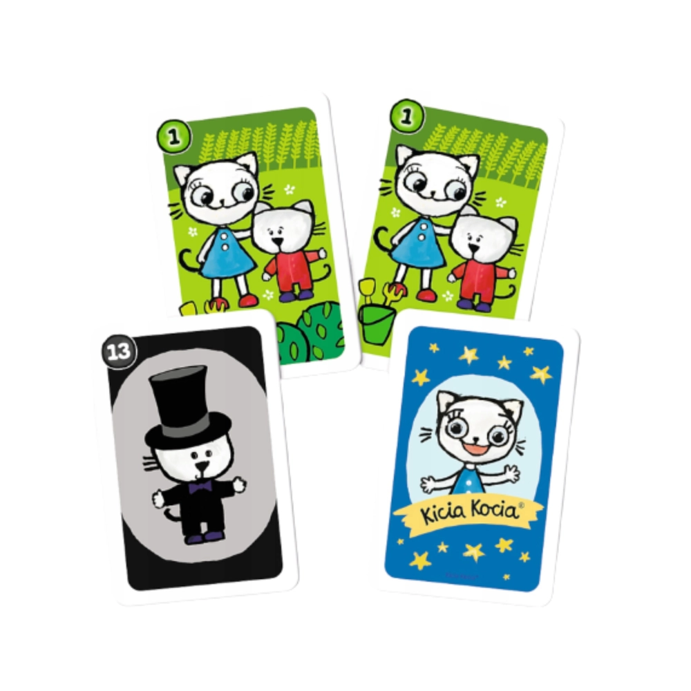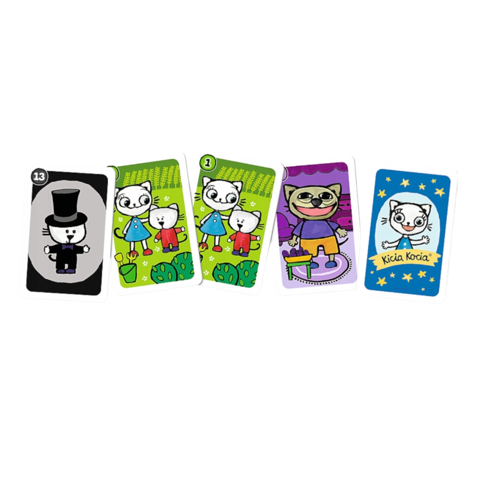 Ce set de cartes joyeusement illustrées avec des motifs KICIA KOCIA est conçu pour les tout-petits – aussi bien pour les débutants que pour les enfants qui connaissent déjà bien les règles. Grâce à son format léger et compact, vous pouvez l’emporter facilement en voyage, en visite ou lors de rencontres entre amis.