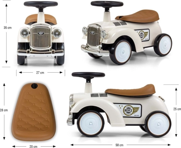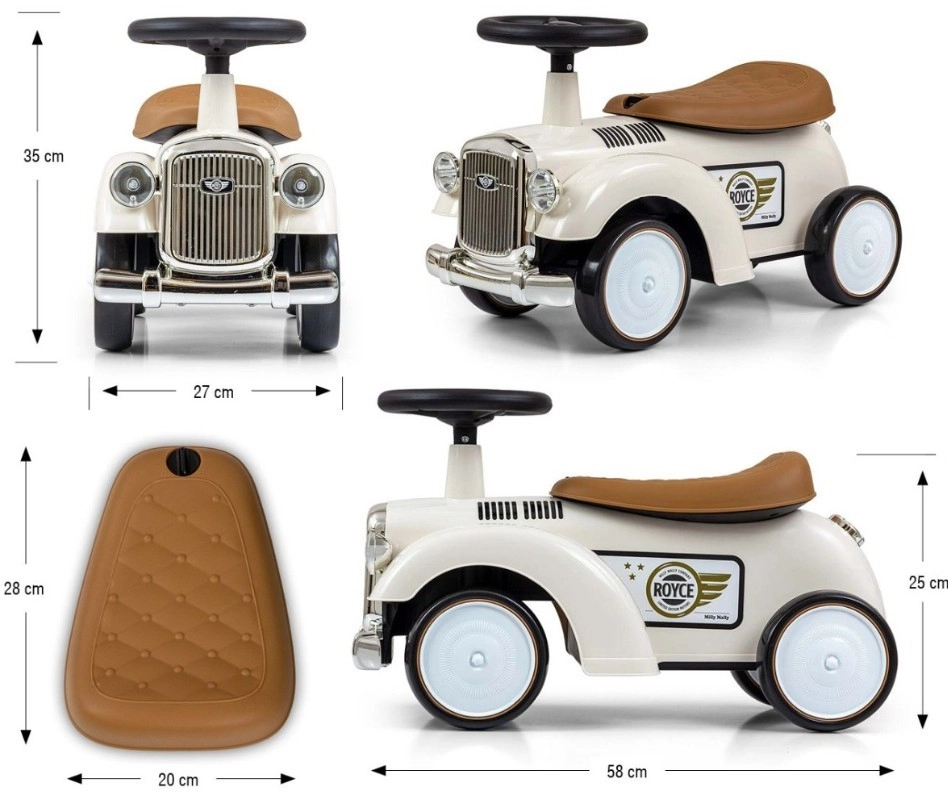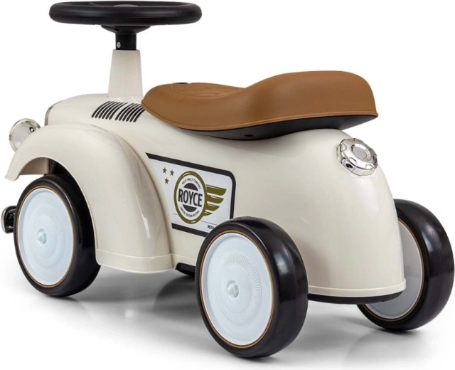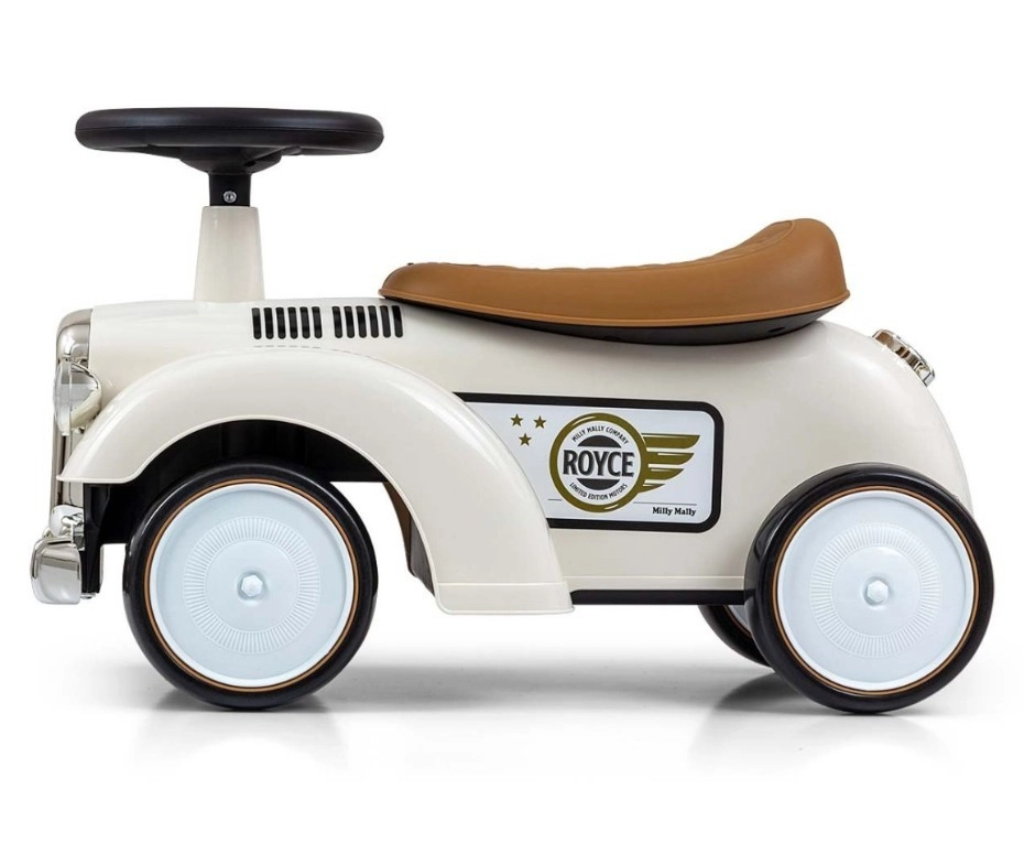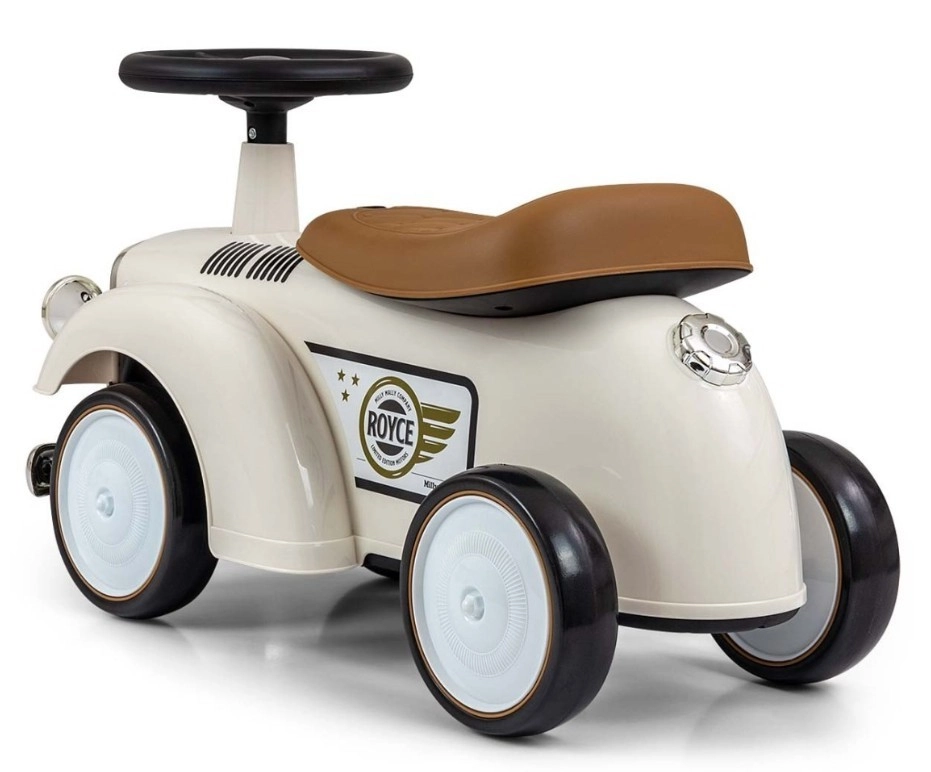 La draisienne Royce se distingue par son look vintage avec des détails chromés et l’emblème ROYCE, qui lui confère un caractère prestigieux. Grâce à ses roues larges et stables et à sa selle agréablement profilée, elle est idéale comme premier véhicule pour les enfants qui savent déjà s’asseoir seuls. Le volant pivotant permet de manœuvrer facilement à l’intérieur comme en promenade.