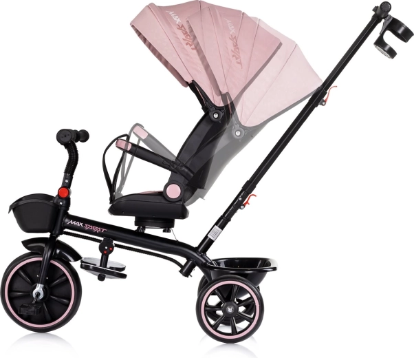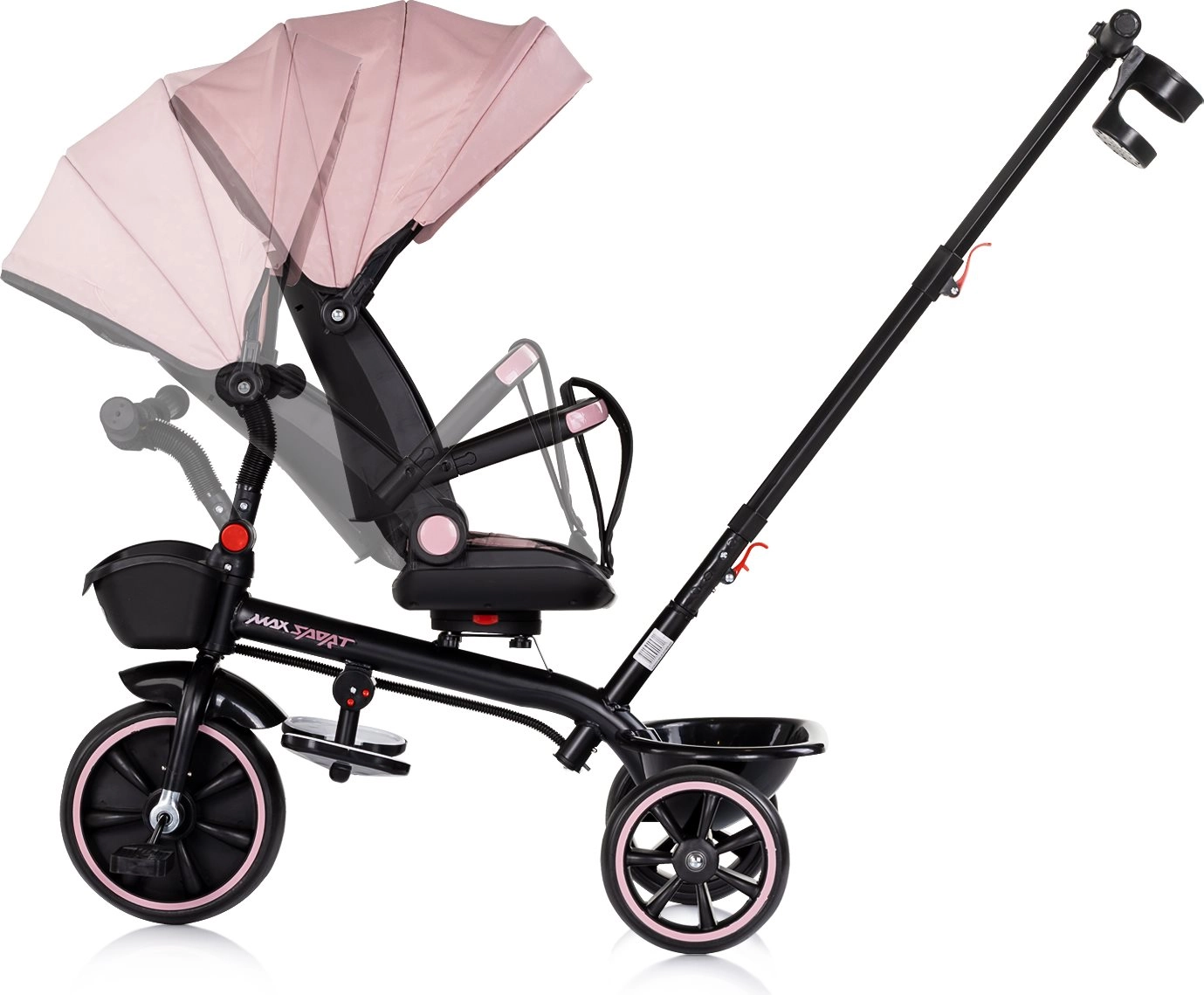 Découvrez une conduite confortable et sûre avec le tricycle CHIPOLINO Max Sport 2-en-1 en couleur Powder Pink. Ce modèle grandit avec l’enfant et offre deux modes d’utilisation – guidage parental avec poignée directionnelle et pédalage autonome par l’enfant. Grâce au siège rotatif à 360°, au rembourrage souple, à la ceinture de sécurité et à l’auvent pliable avec pare-soleil, la balade est toujours confortable et protégée. S’ajoutent un panier avant et arrière, un repose-pieds rabattable et une poignée parentale réglable pour un confort maximal.