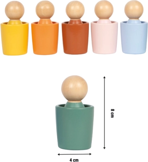 6 figurines en bois et 6 gobelets colorés