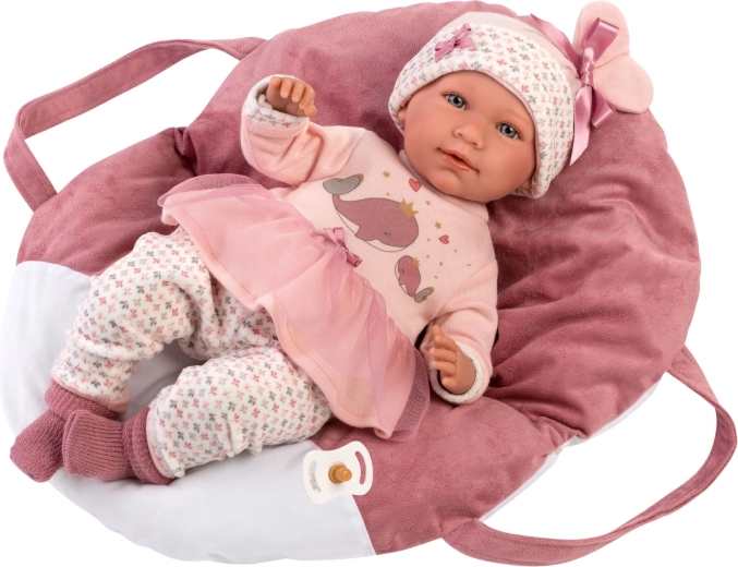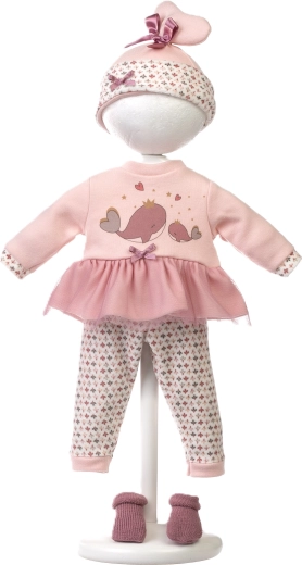 Offrez à votre poupée confort et style. Cet ensemble 5 pièces pour poupées NEW BORN Llorens (40–42 cm) comprend des vêtements assortis dans de douces teintes roses avec un motif ludique de baleines, ainsi qu’un porte-bébé/coussin moelleux avec harnais à trois points. Grâce à la fabrication artisanale en Espagne, vous pouvez compter sur une finition soignée et des matériaux agréables adaptés aux petites mains.