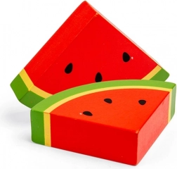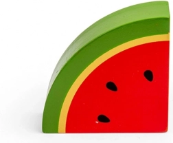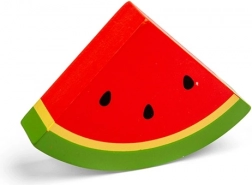 Les couleurs vives et les détails de la pastèque incitent les enfants à la prendre en main et à inventer des jeux de rôle dans la cuisine ou la boutique.