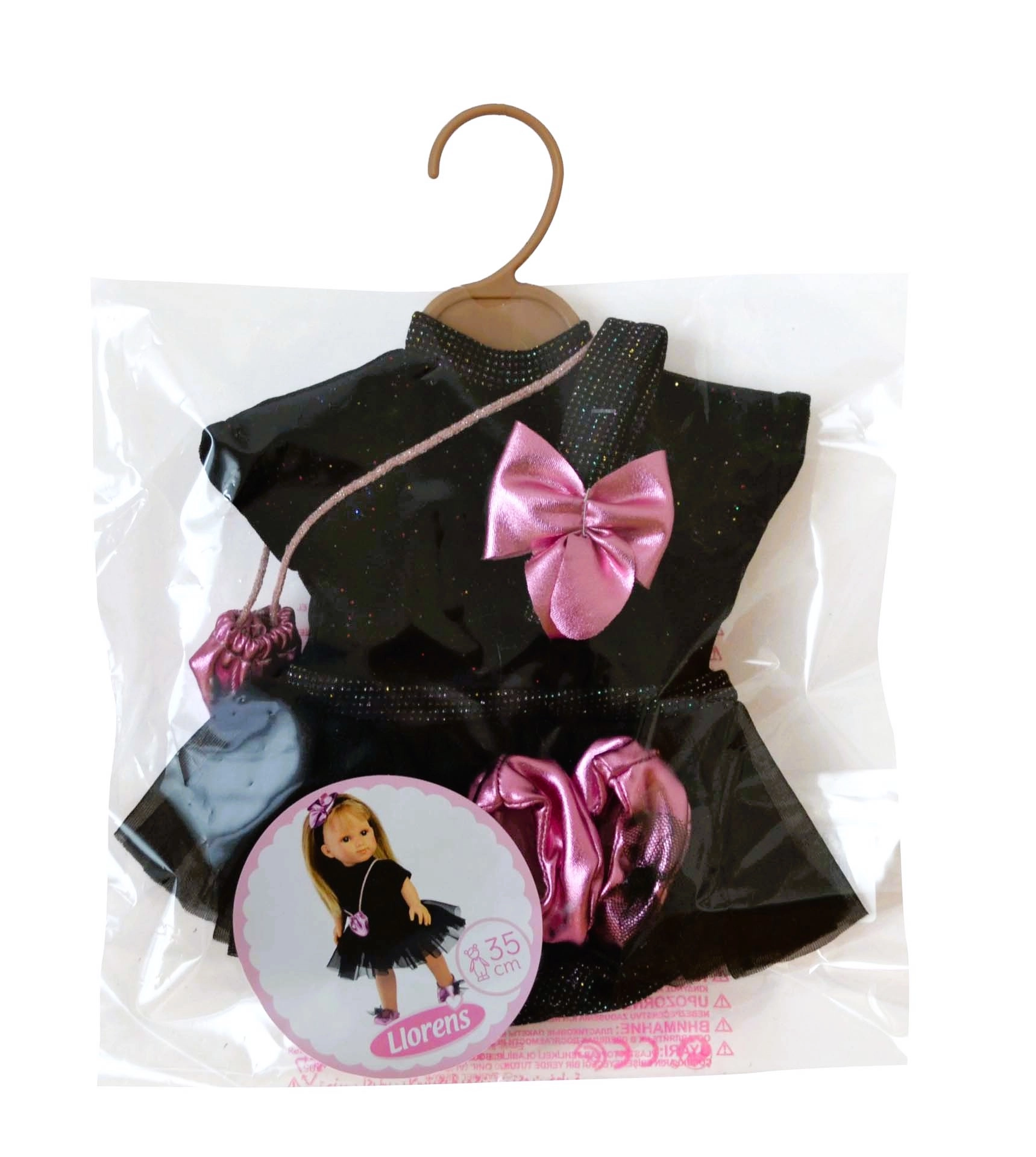 Offrez à votre poupée une tenue stylée avec cet ensemble 5 pièces pour poupées Llorens 35 cm. Fabriqué à la main en Espagne, il comprend 3 pièces de vêtement, un élastique à nœud pour les cheveux et un sac à main. Finition de qualité, habillage facile et idéal pour le jeu créatif dès 3 ans.