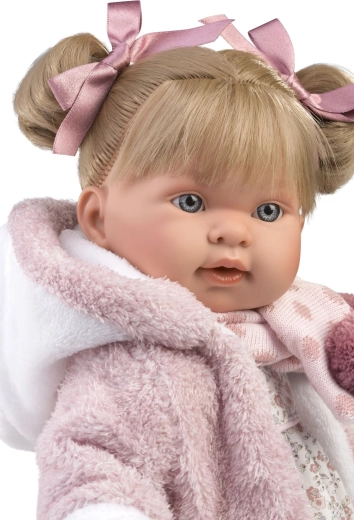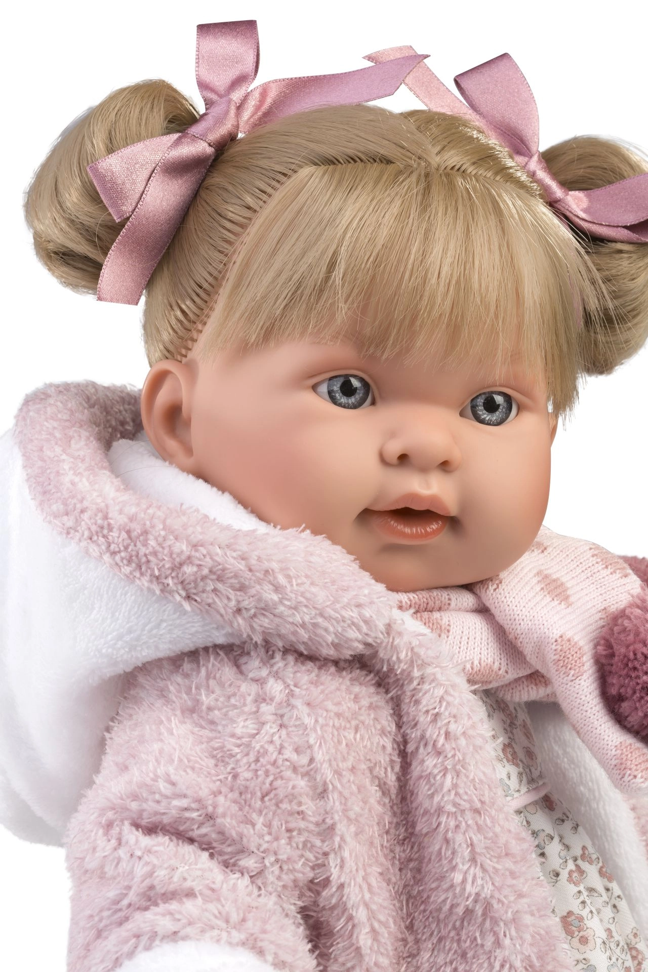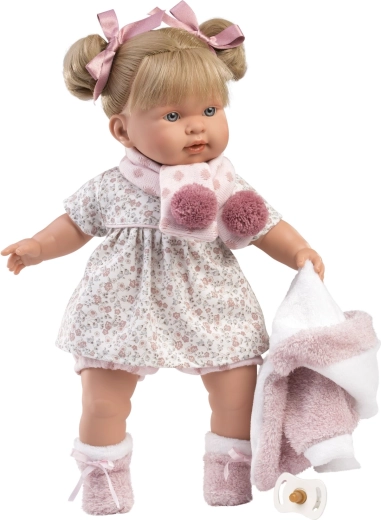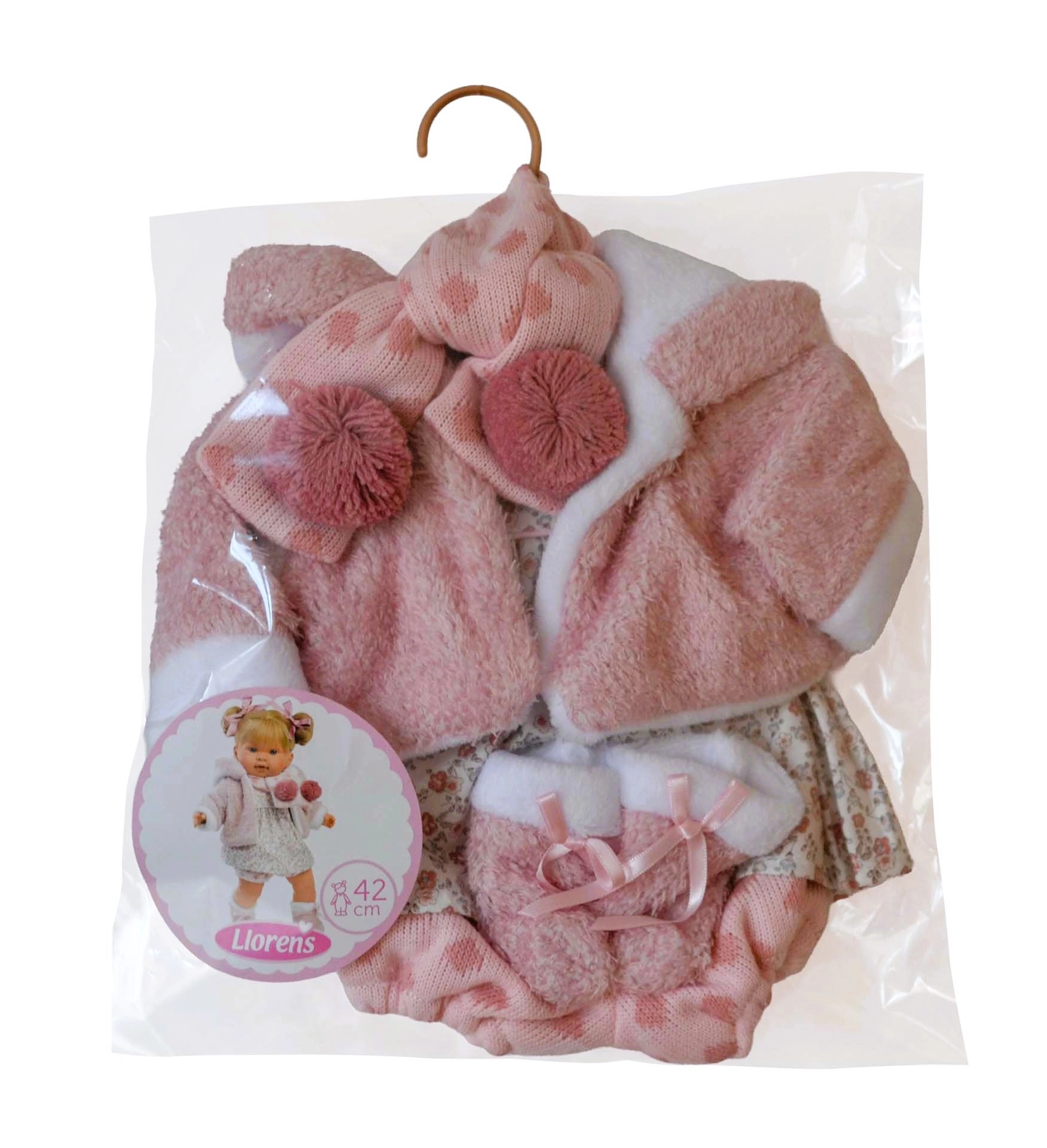Un ensemble stylé pour poupées LLORENS de 42 cm qui ravira chaque petite coquette. Il comprend 5 pièces soigneusement assorties en textiles doux – un manteau rose duveteux à bord blanc, un bonnet/écharpe à pompons, des moufles et une petite robe à fleurs avec culotte. Les vêtements sont fabriqués à la main en Espagne et livrés dans un étui pratique avec cintre. Idéal pour le jeu d’imitation et le développement de la motricité fine. Convient dès 3 ans.