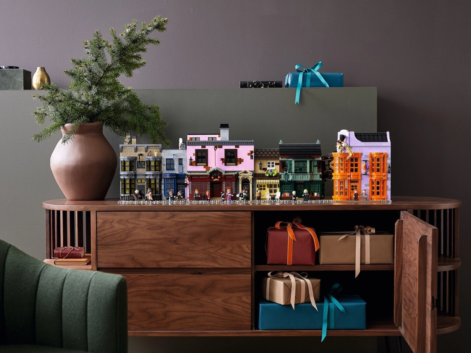 Grâce à la construction modulaire, vous pouvez réorganiser et étendre les sections pour créer votre propre ruelle. Le set est idéal pour les collectionneurs, l’exposition en intérieur et de longues heures de jeu imaginatif. On trouve aussi l’entrée légendaire de la rédaction de la Gazette du Sorcier et des éléments manuels, comme le célèbre chapeau au-dessus de l’entrée des farces des Weasley.