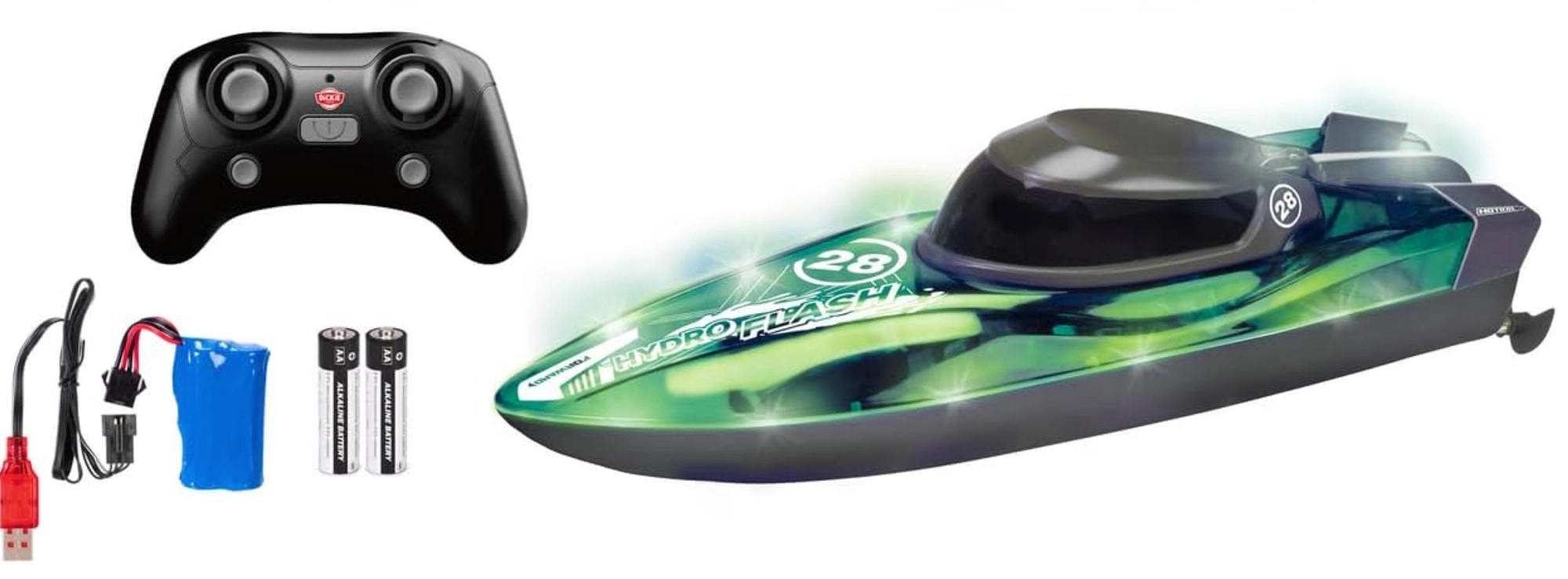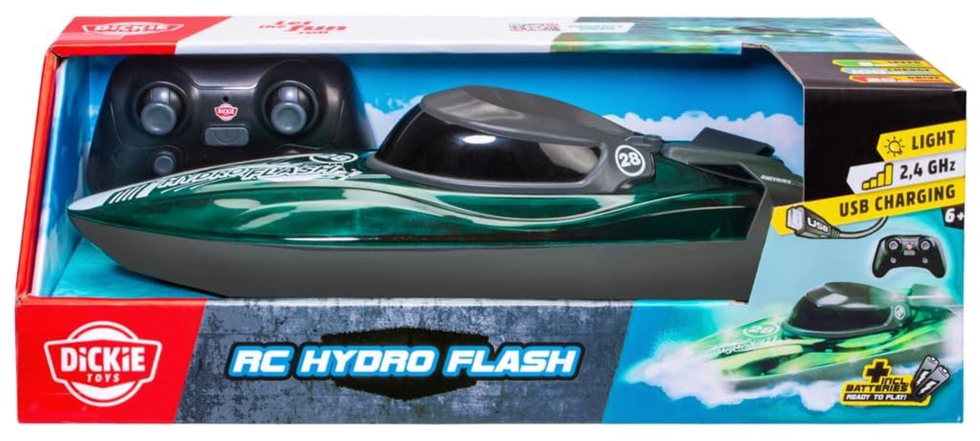 Découvrez un divertissement dynamique sur l’eau avec le bateau RC DICKIE TOYS Hydro Flash. Grâce à la technologie 2,4 GHz, le contrôle est stable et sans interférences, vous permettant de faire la course avec plusieurs modèles en même temps. Le mode Turbo augmente la vitesse jusqu’à 8 km/h, pour encore plus d’adrénaline et de fun.