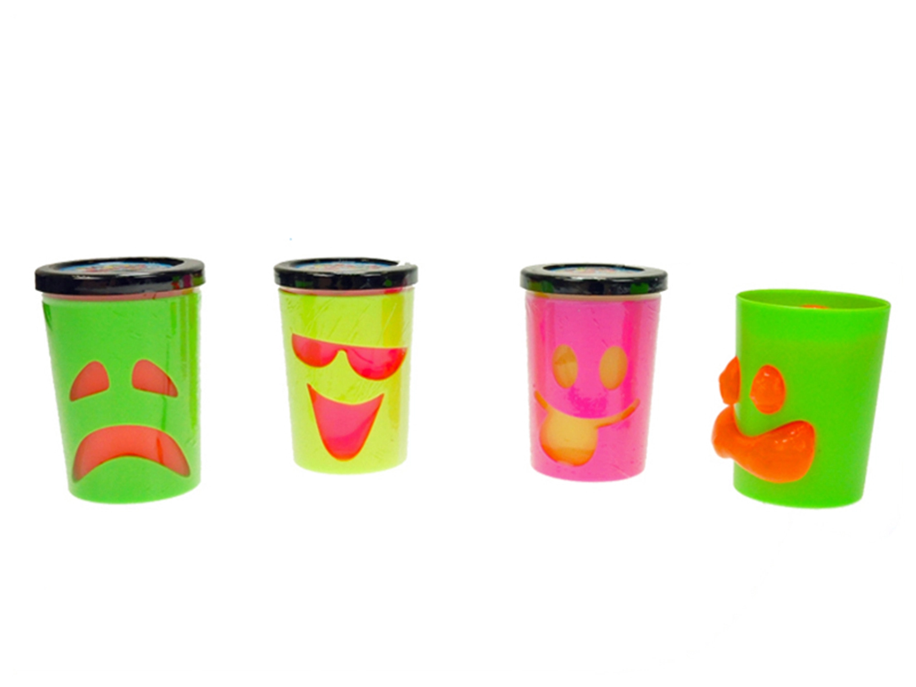 Le gobelet pratique avec couvercle assure un rangement facile et sans désordre. Les couleurs néon vives invitent à jouer sans cesse et les visages emoji ajoutent un effet visuel original. Idéal comme petite récompense, cadeau de fête ou accessoire amusant pour les anniversaires.