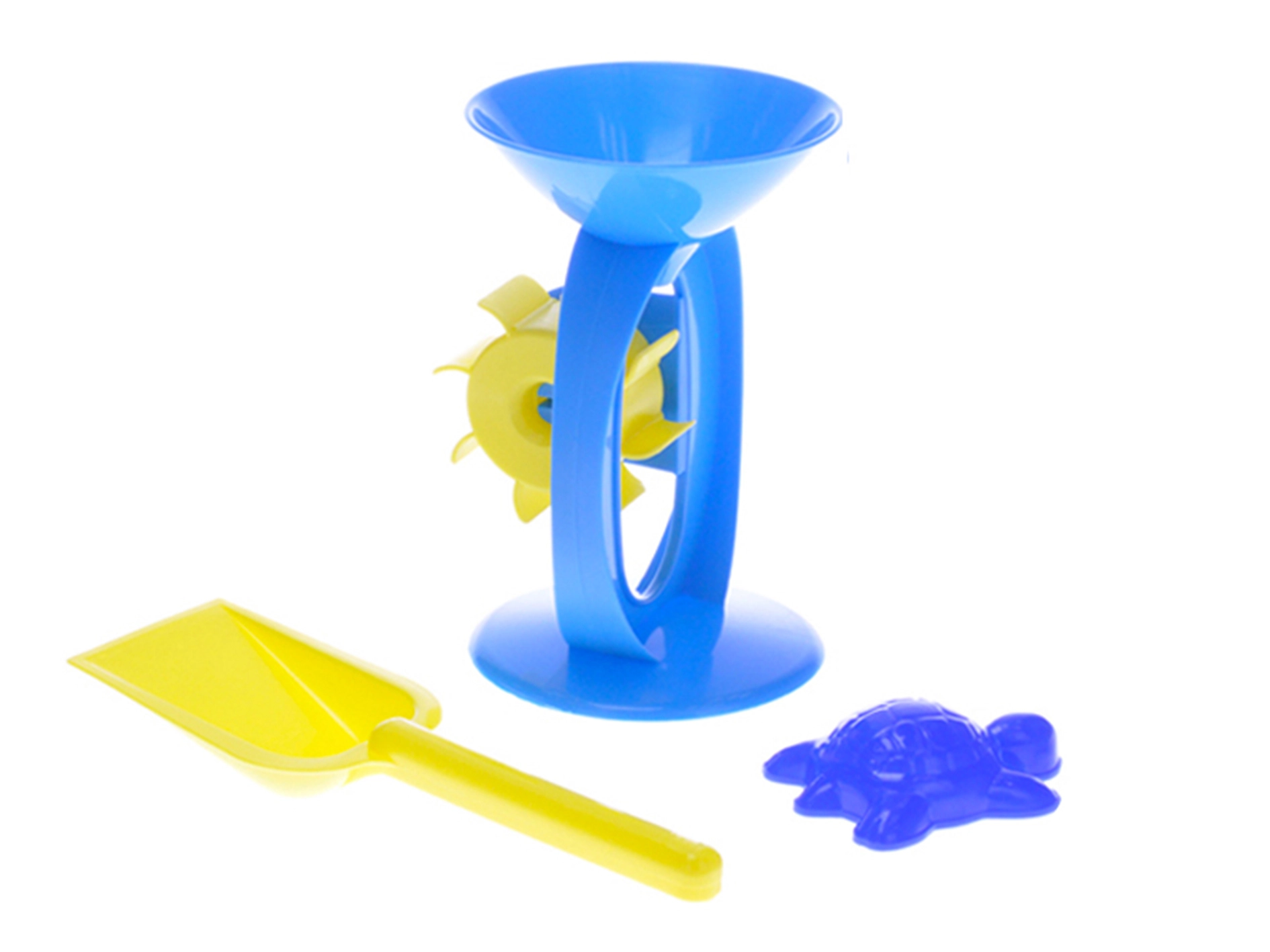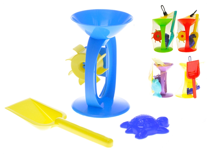 Versez de l’eau ou du sable dans l’entonnoir et observez les pales tourner. Un amusement garanti et un apprentissage ludique des principes physiques.