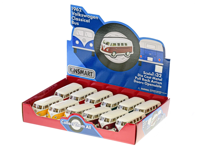 Des détails de carrosserie précis, un pare-brise en deux parties et le logo VW bien visible offrent l’apparence fidèle de l’iconique minibus pour votre collection comme pour le jeu des enfants.
