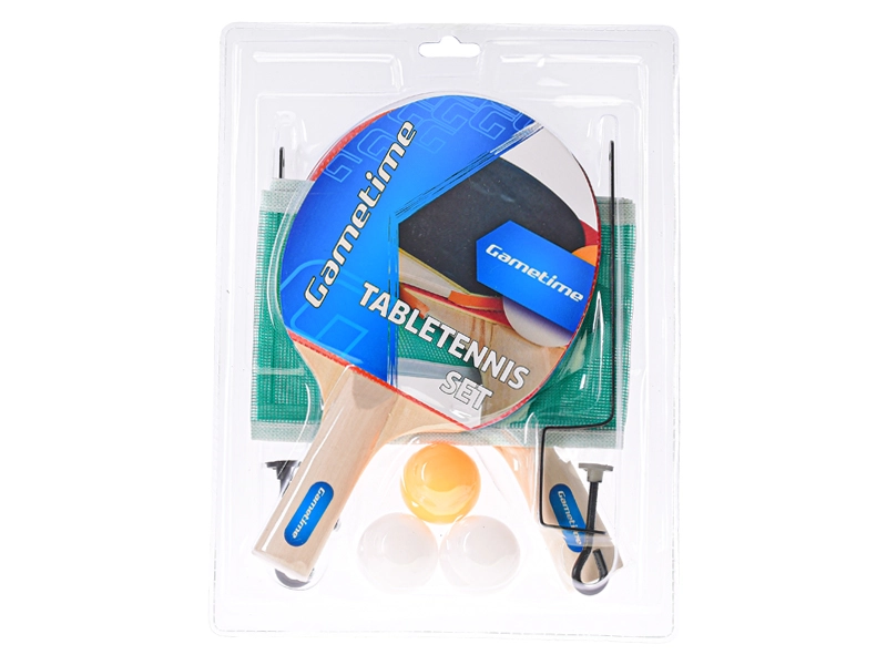 Set complet de tennis de table GAMETIME pour jouer rapidement et avec plaisir à la maison comme en voyage. Contient 2 raquettes en bois, 3 balles et un filet avec fixations pour un montage facile sur une table standard. Idéal pour un jeu récréatif et le développement de la coordination – prêt à jouer immédiatement.
