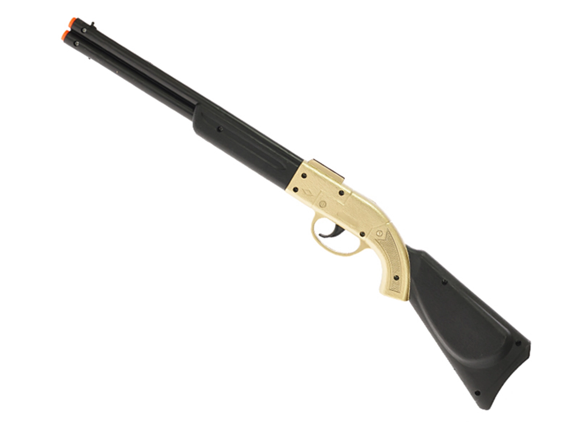 Amusant fusil cliquetis de cow-boy de 50 cm dans une finition dorée attrayante qui ravira tous les petits aventuriers. Grâce à son design réaliste, au bruit de cliquetis lors de l’appui sur la gâchette et à sa construction légère en plastique, il stimule l’imagination des enfants et offre des heures de jeu en toute sécurité dès 3 ans.