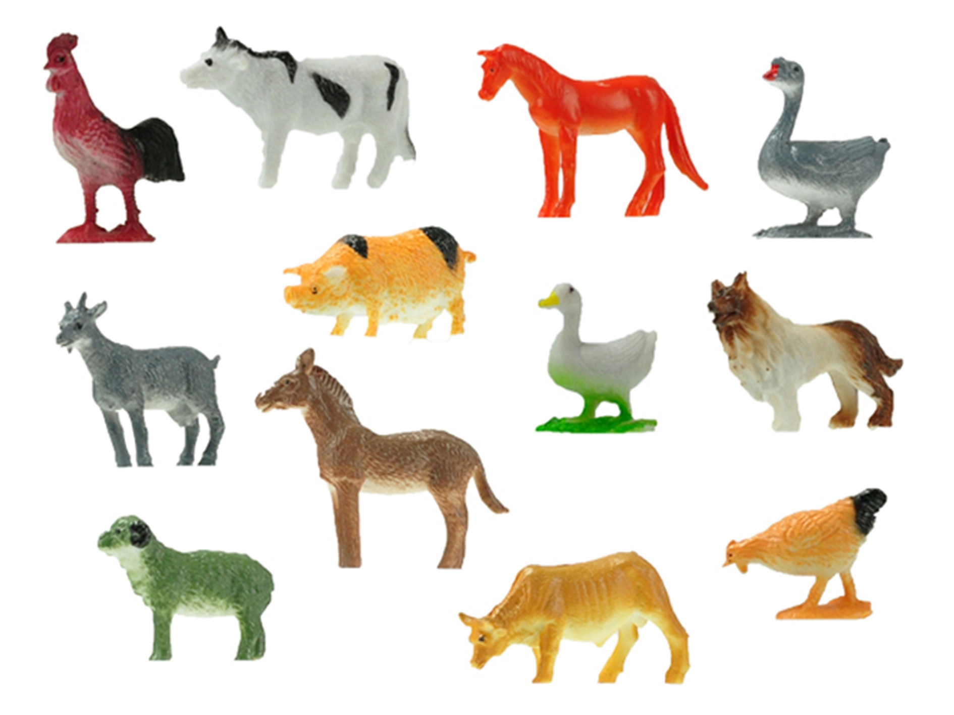 Ce set varié comprend des animaux de ferme populaires – par exemple un chien, un cheval, une vache, un âne et d’autres encore. Grâce à leurs petites dimensions, les figurines tiennent facilement dans les mains des enfants et conviennent au jeu individuel comme au jeu en groupe.