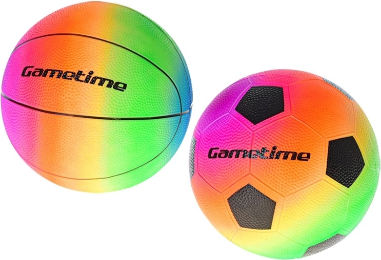 Choisissez entre le ballon de basket et le ballon de football en version arc-en-ciel – idéal pour le jeu récréatif en extérieur et près de l’eau.