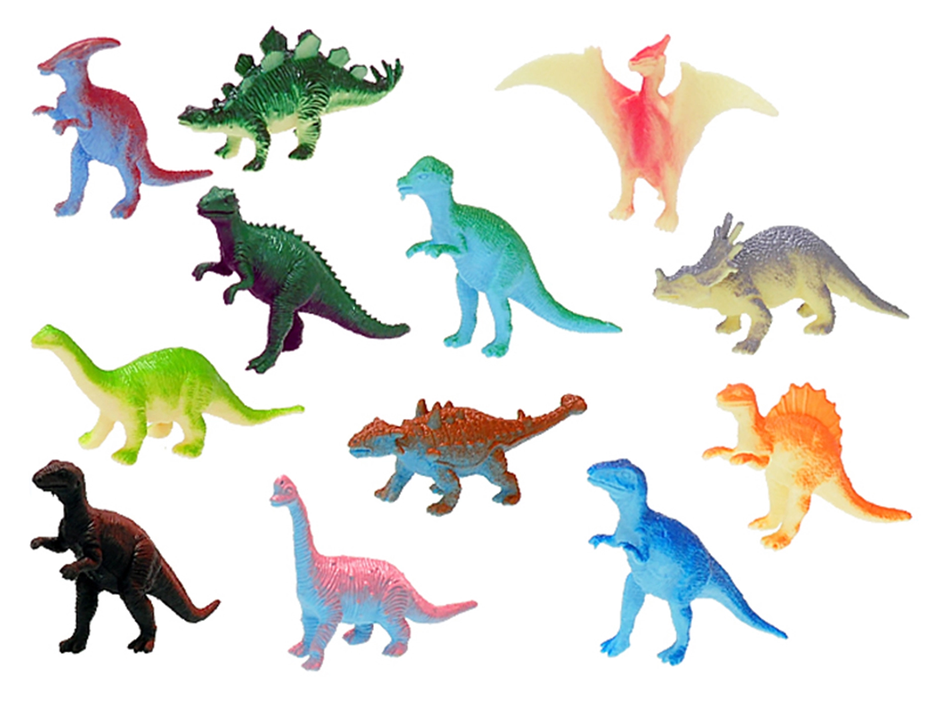 - Diverses espèces de dinosaures, couleurs vives