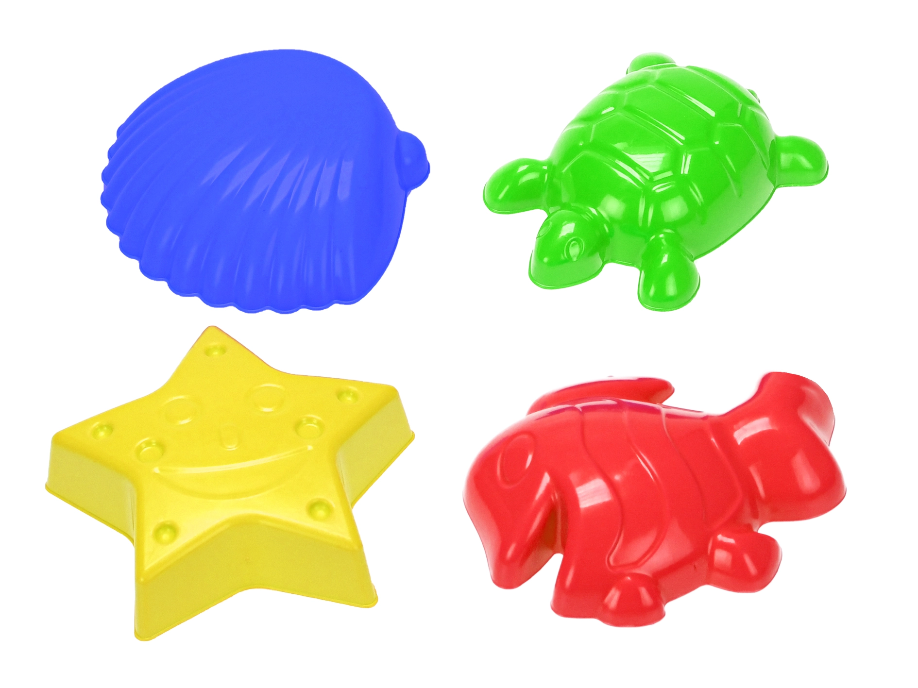 Ce set coloré de moules à sable apporte aux enfants une dose infinie de divertissement à la mer comme au bac à sable. Grâce aux formes appréciées – coquillage, étoile de mer, petit poisson et petite tortue – les enfants créent facilement de jolies empreintes de sable et développent leur imagination. Les moules sont conçus avec un accent sur la sécurité, avec des bords lisses et arrondis et sont légers pour les petites mains.