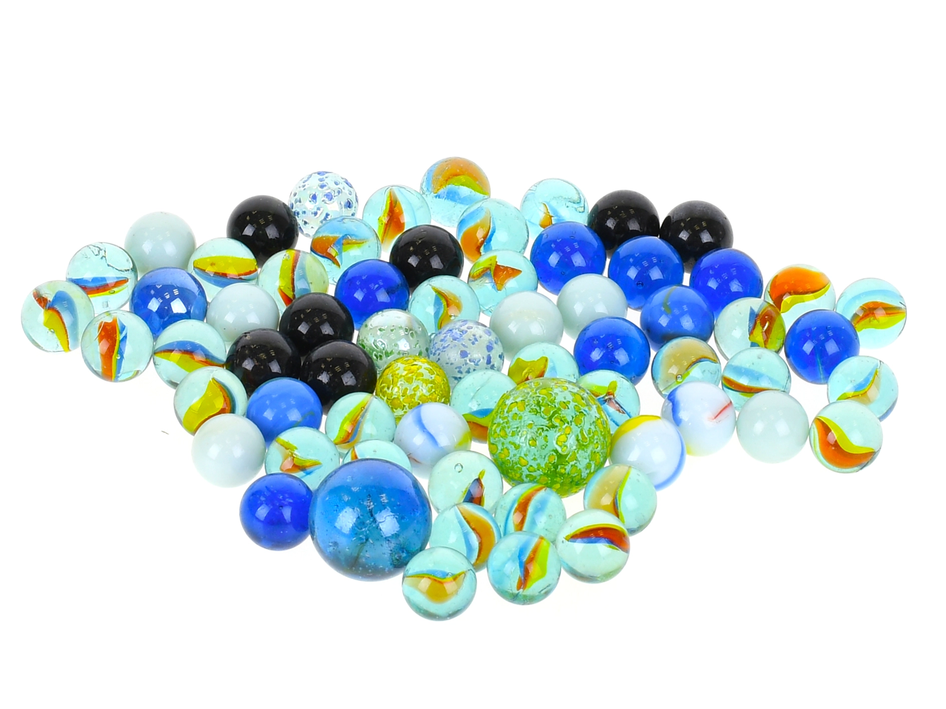 Des couleurs et tailles diverses avec des tourbillons de verre typiques rendent le set idéal pour les jeux classiques de billes, les concours et la décoration.