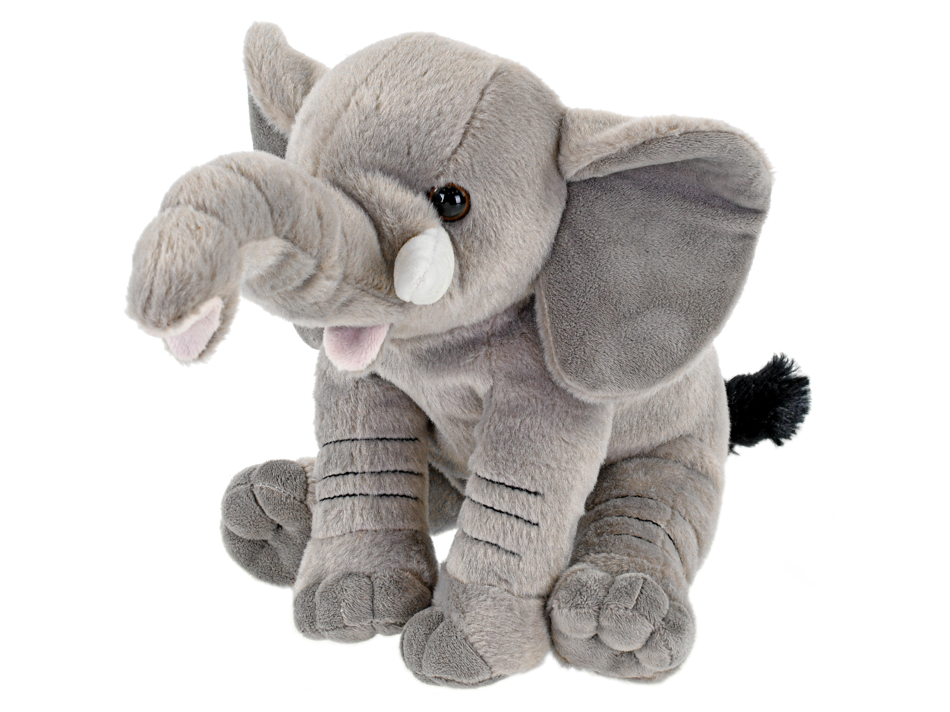 Cet éléphant en peluche gris à la position assise, avec de grandes oreilles souples et une trompe recourbée est fabriqué dans une matière extrêmement agréable, qui invite aux câlins. Grâce à sa taille compacte de 20 cm, il se glisse facilement dans la poussette, le lit et le sac de voyage.