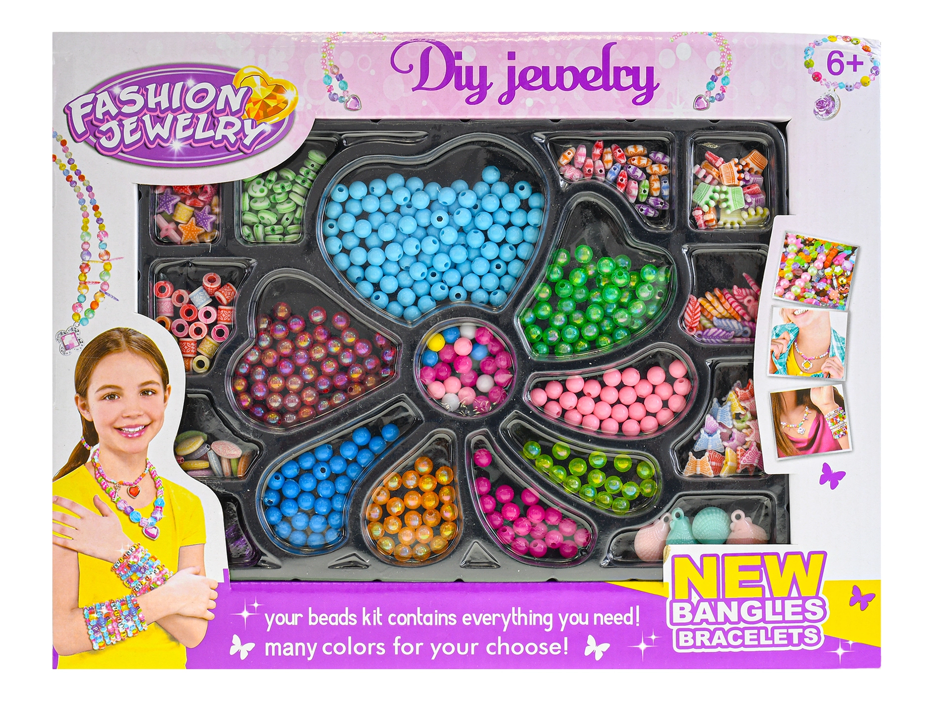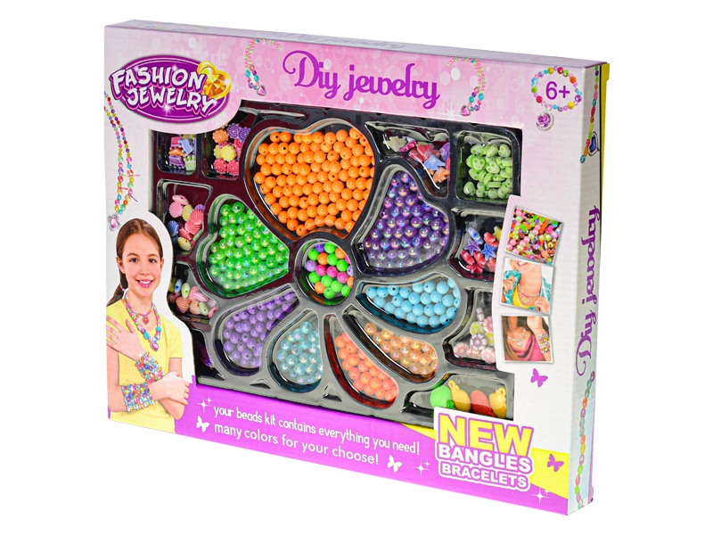- Différentes formes et couleurs de perles, favorise la motricité fine et la créativité