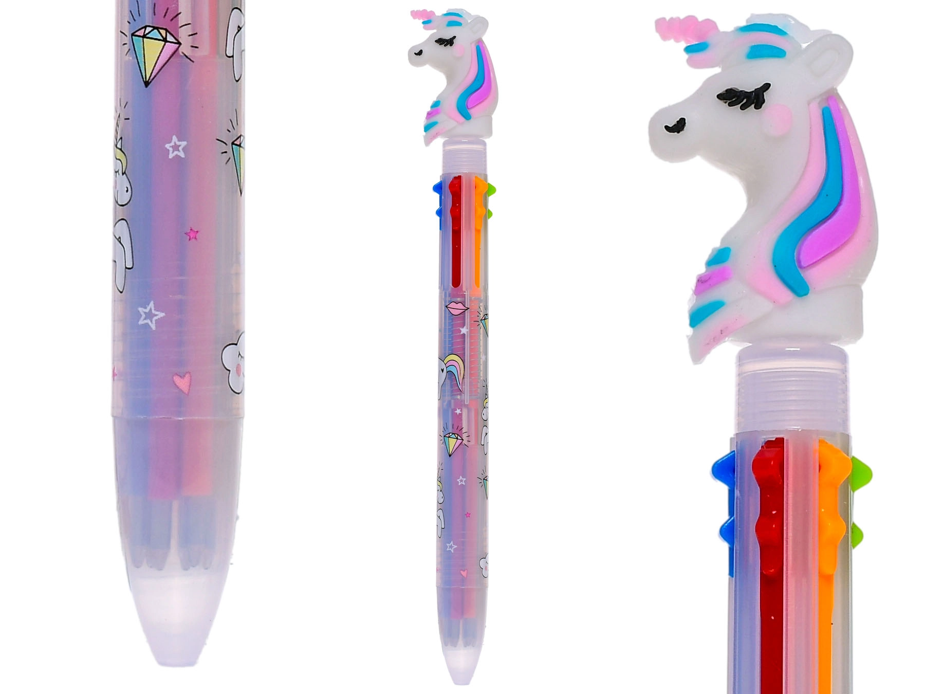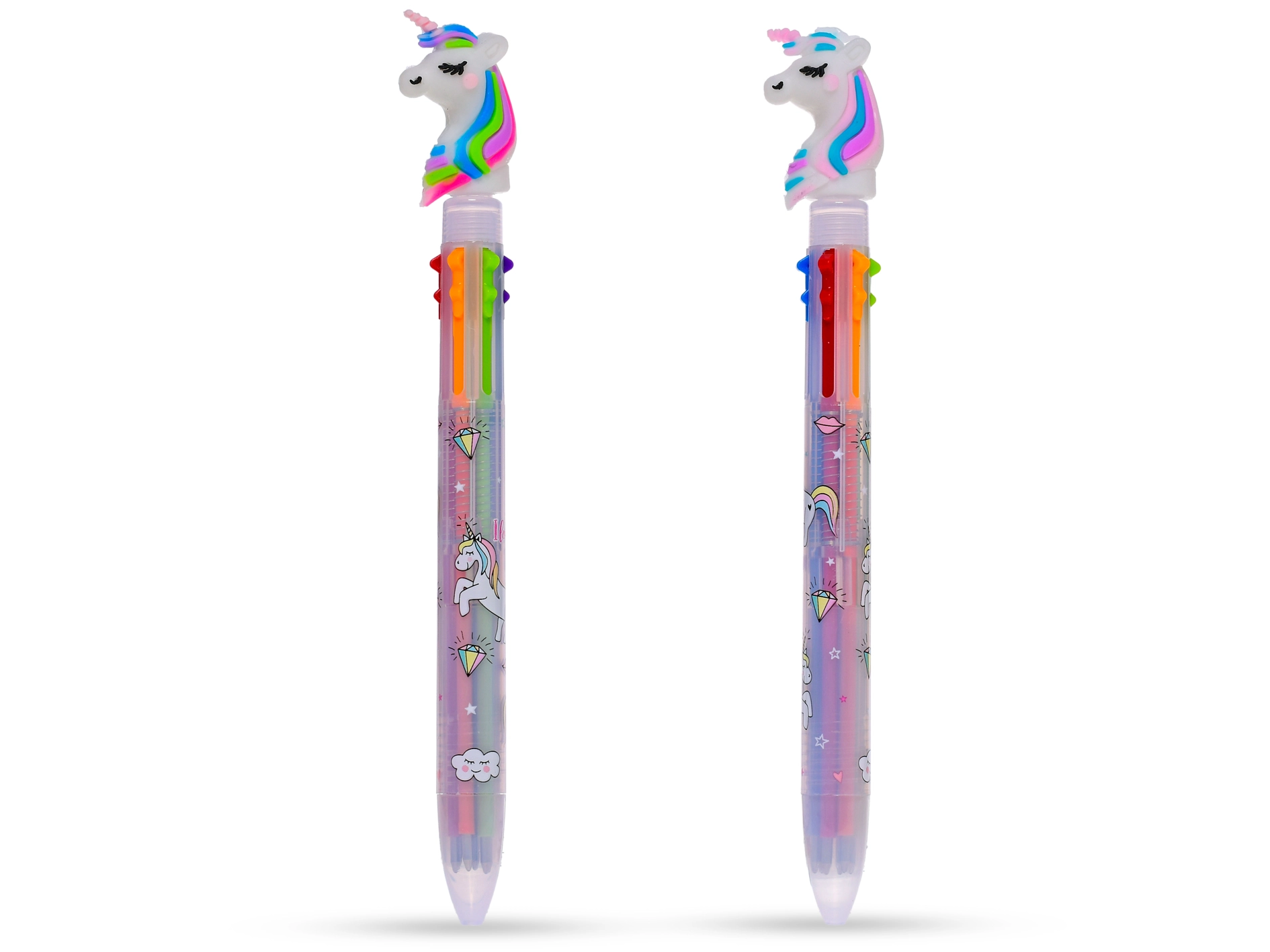 Le stylo arc-en-ciel avec licorne est un excellent choix pour les petits créateurs qui aiment les couleurs et l'imagination. Grâce à un mécanisme astucieux, vous passez facilement entre six couleurs dans un seul stylo pour dynamiser notes, dessins et projets scolaires. Sa construction légère et résistante en plastique assure une prise en main confortable même pour les petites mains.