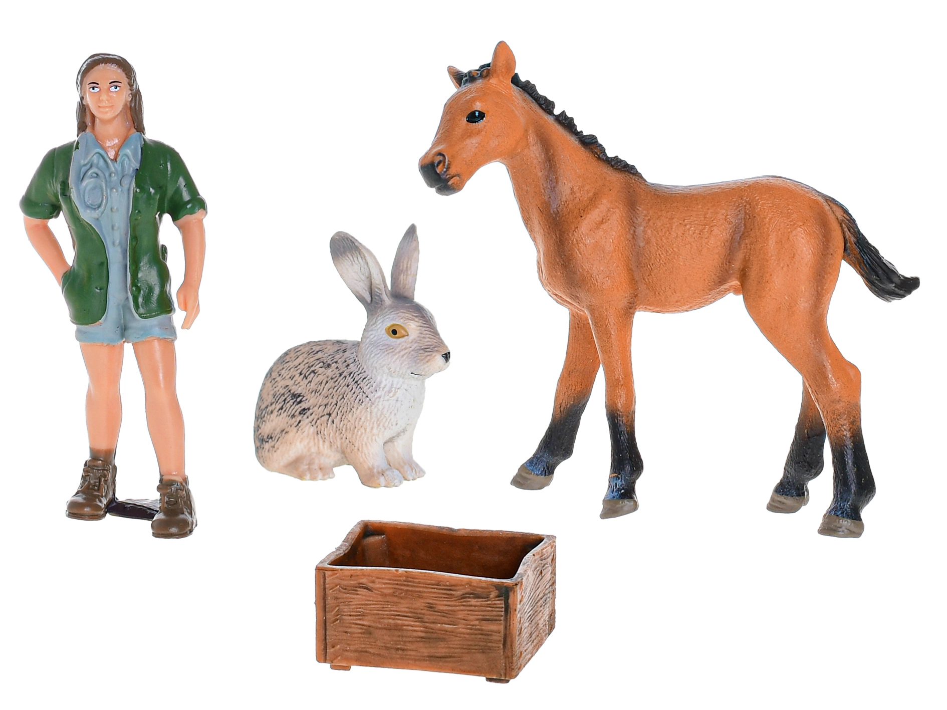 Découvrez un monde de fantaisie avec le set Zoolandia ferme – figurines en plastique de fermiers et fermière avec accessoires pour un jeu créatif. Disponibles en 4 variantes différentes (fermier avec chapeau, fermier avec balai, fermier avec carotte, fermière). Idéal pour développer l’imagination, la motricité fine et les histoires de jeu. Convient à partir de 3 ans.